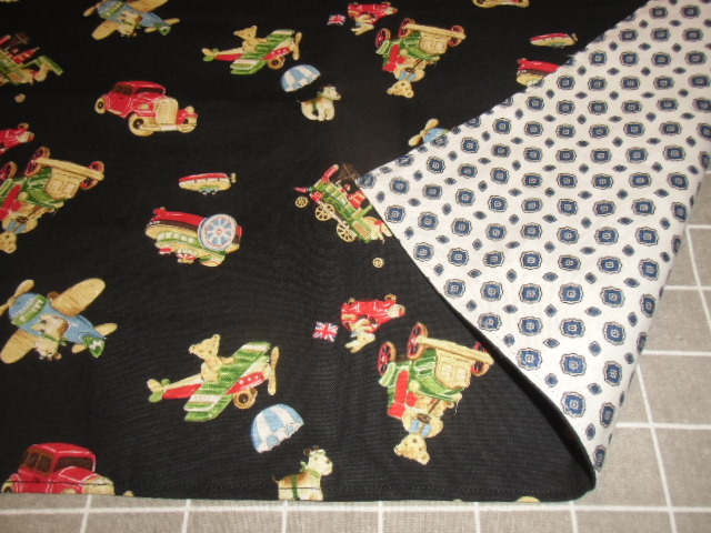 No.603  大判裏付ランチョンマット ハンドメイド  40x60 クマ柄 黒色 男の子