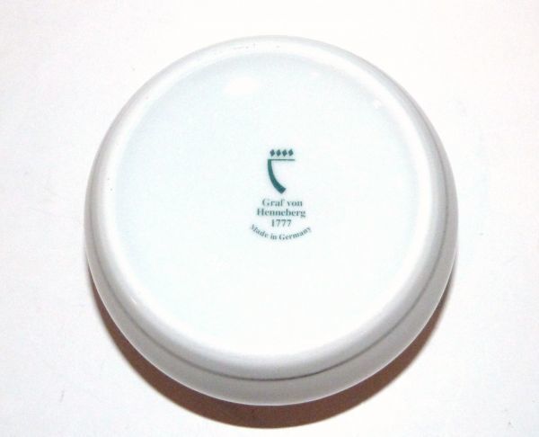 | ブランド | Graf von Henneberg(グラーフ フォン ヘンネブルグ)Henneberg Porzellan は1777年にドイツのチューリンゲン地方、イルメナウで生産を始めた"Furstlich Sachsen Weimar Porzellanfabrik"が元になっています。1930年時点では株式会社であった会社が第二次世界大戦で東ドイツになると国有化され1990年のドイツ統一で有限会社になったことが分かります。2002年には社名からは Henneberg がなくなりますがGraf von Henneberg というブランド名で生産が続けられています。 |