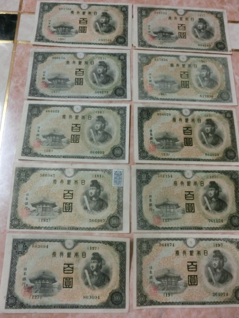 不換紙幣100円 2次100円を10枚セットです。(証紙付有り)