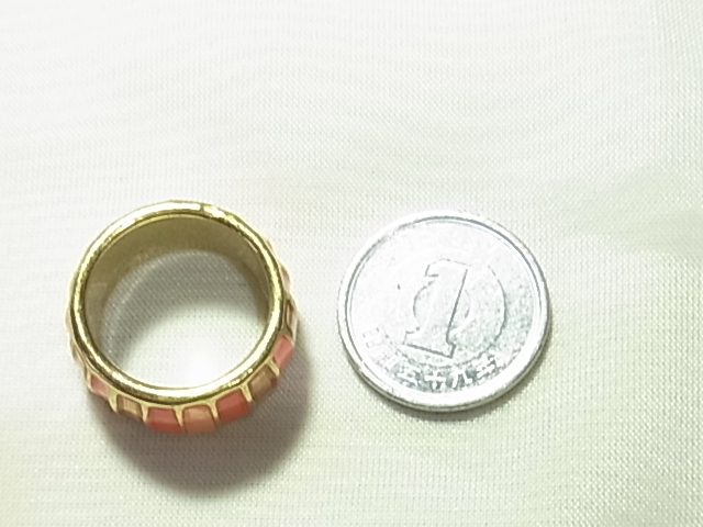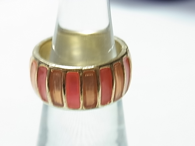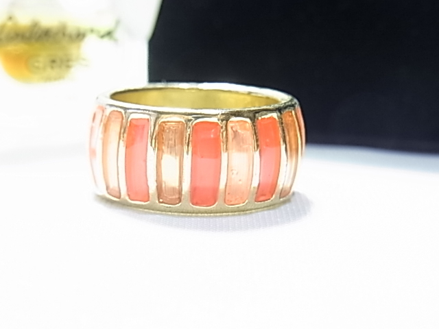 朱色とオレンジ系のコンビカラー 幅広で印象的 幅1センチ キュートカラー サイズ10号 リング 指輪