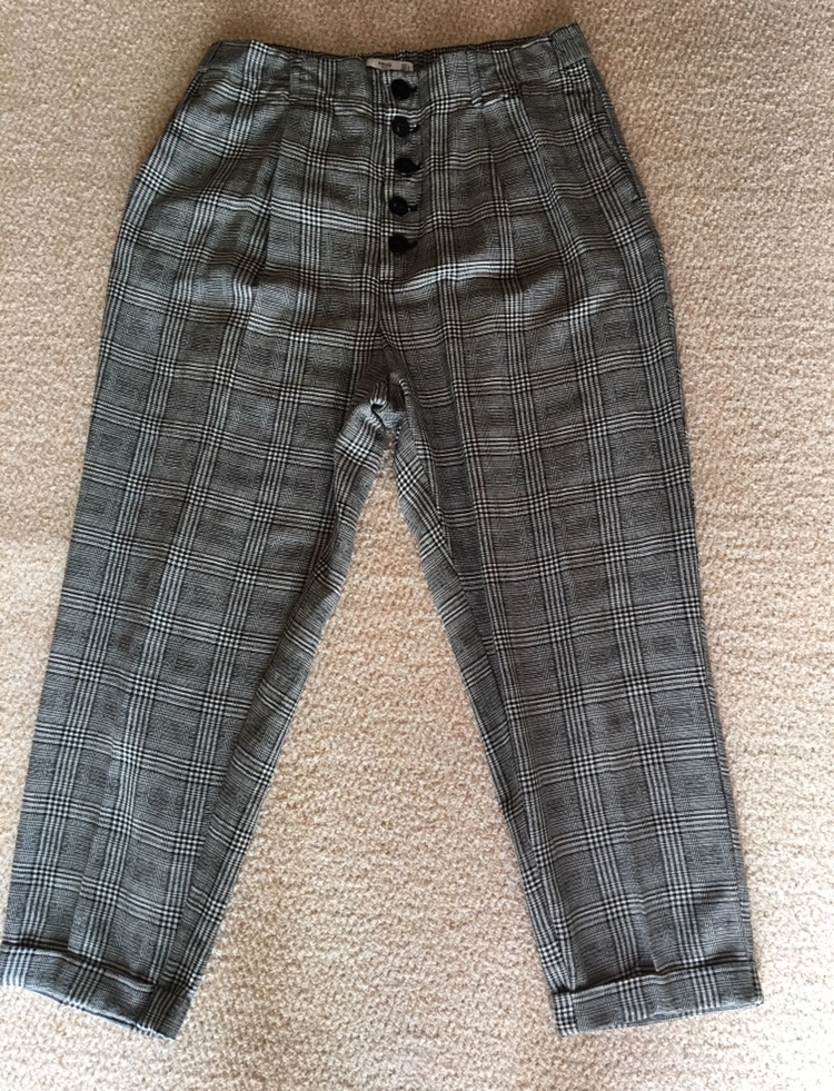 サイズ ウエスト平置き40㎝、ヒップ平置き58㎝、股上32㎝、股下62㎝、34㎝