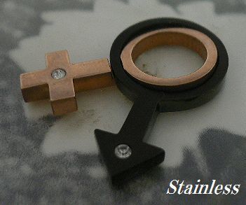 在庫処分★サージカル ステンレス製ジルコニア付Man&Womanシンボル ペアペンダントset/ステンアクセALL50%OFF