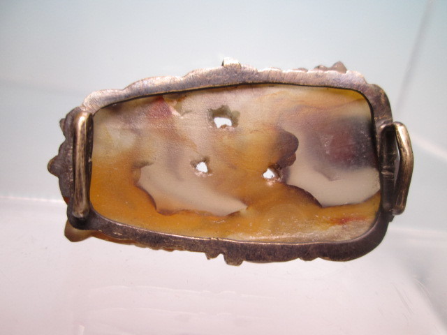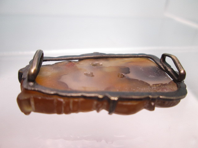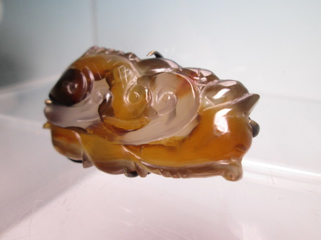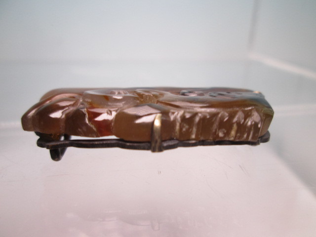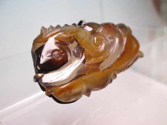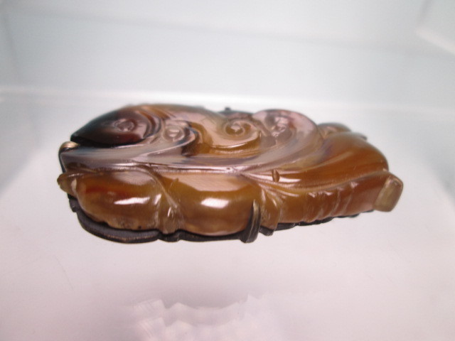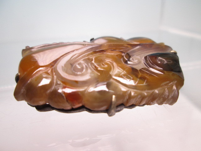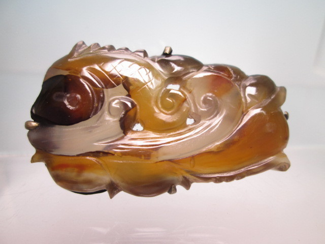 【江月】アンティーク・天然石ギョク 波に鯉彫刻の帯留め 10,49g