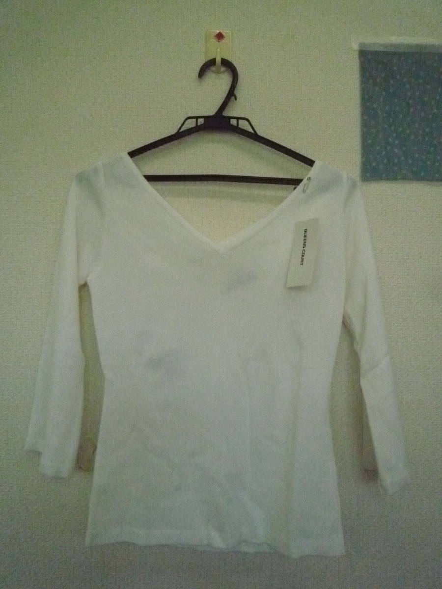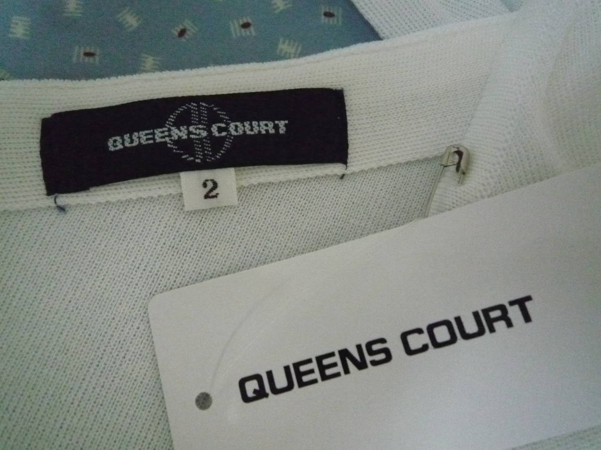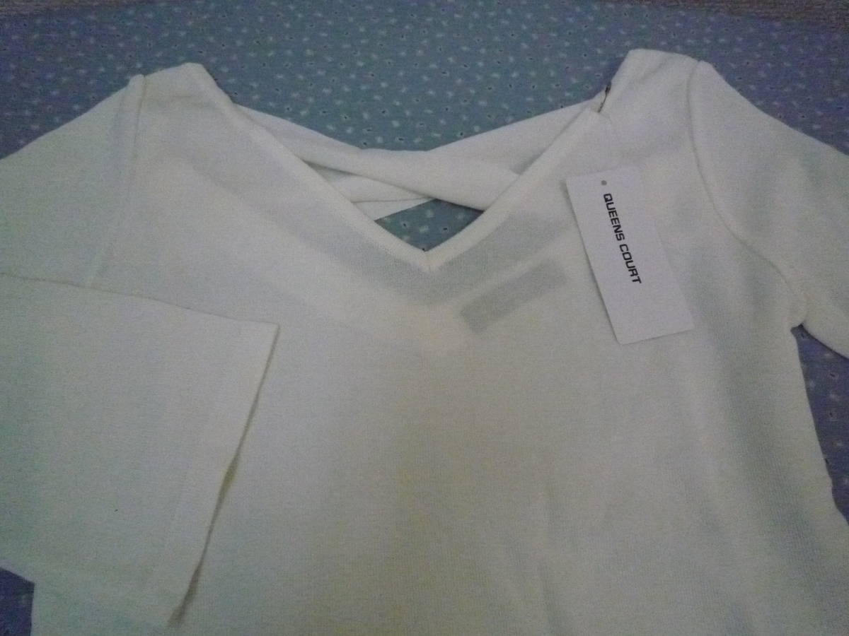 ★ タグ付 QUEENS COURT クイーンズコート ニット トップス 背中見せクロス Vネック 七分袖 ホワイト系 サイズ2