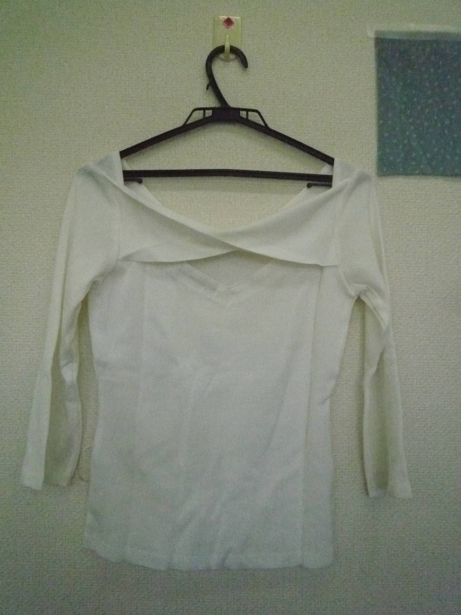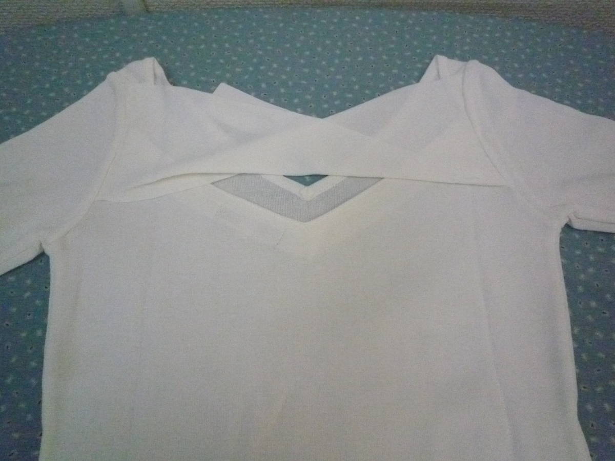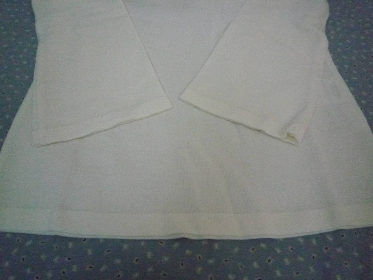 ★ タグ付 QUEENS COURT クイーンズコート ニット トップス 背中見せクロス Vネック 七分袖 ホワイト系 サイズ2