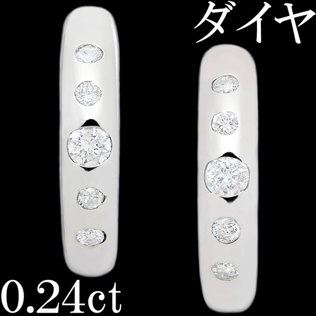 | スマート 上品☆ダイヤ 0.24ct イヤリング Pt850 プラチナ フープ♪鑑別書付・送料込 | ||