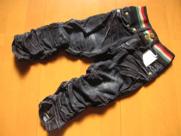 *新品*140*デニム*裾クシュクシュ6分丈パンツ*インディゴ(Col80)