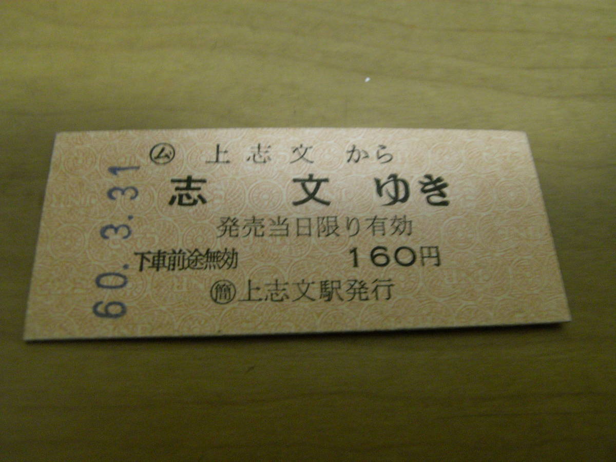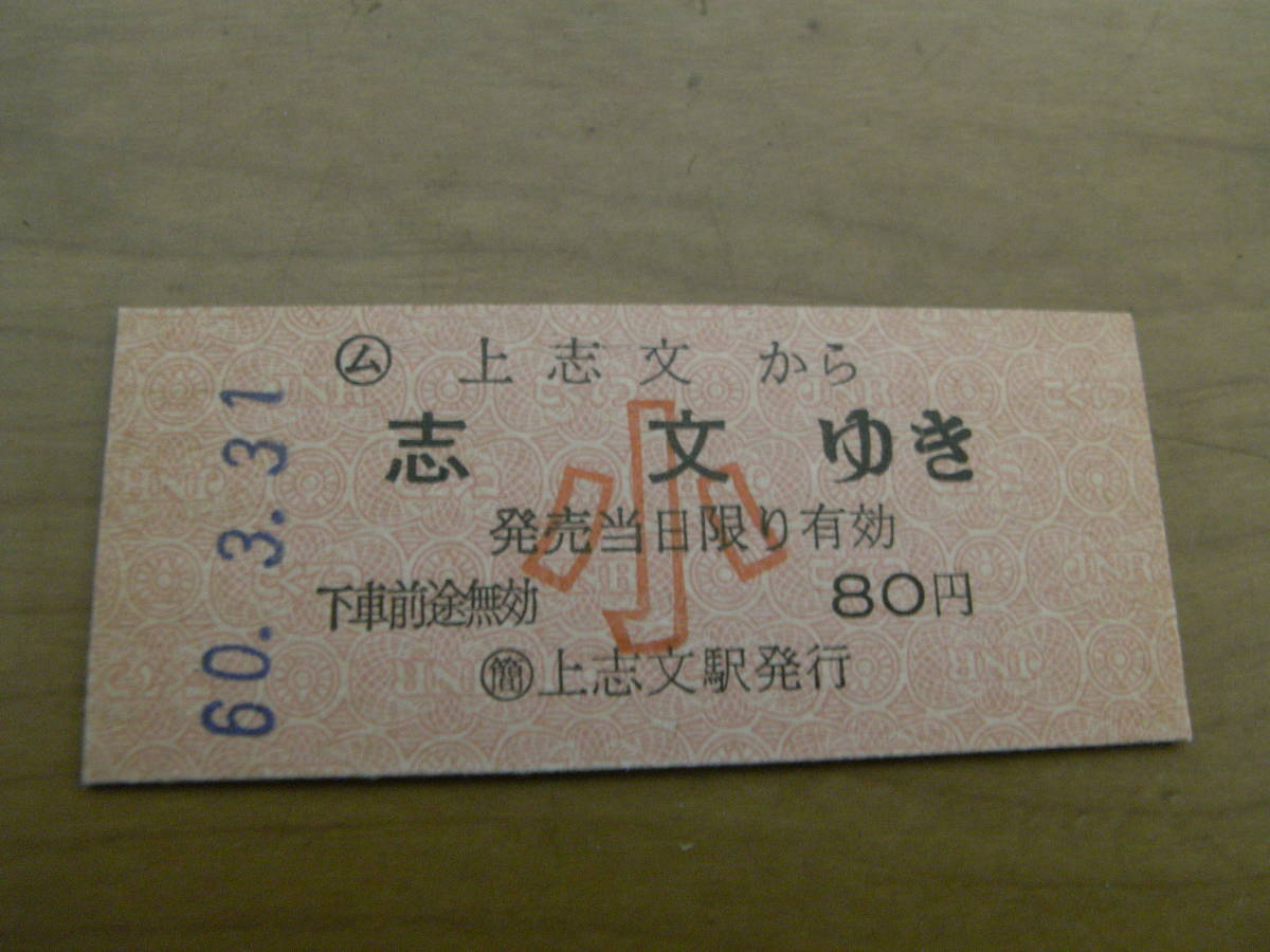 2枚/万字線 上志文から志文ゆき 昭和60年3月31日 簡 上志文駅発行 大・小 2枚 ●営業最終日