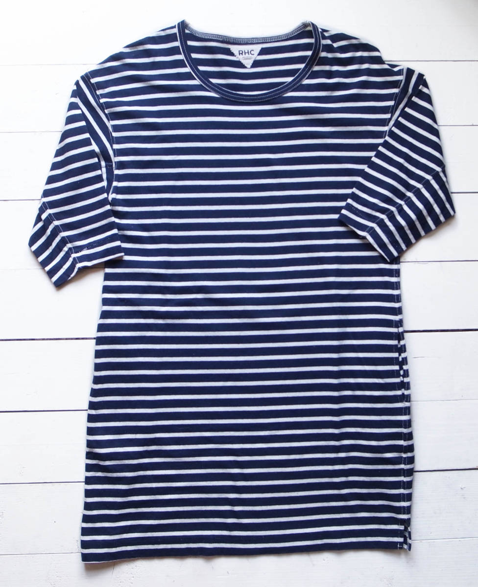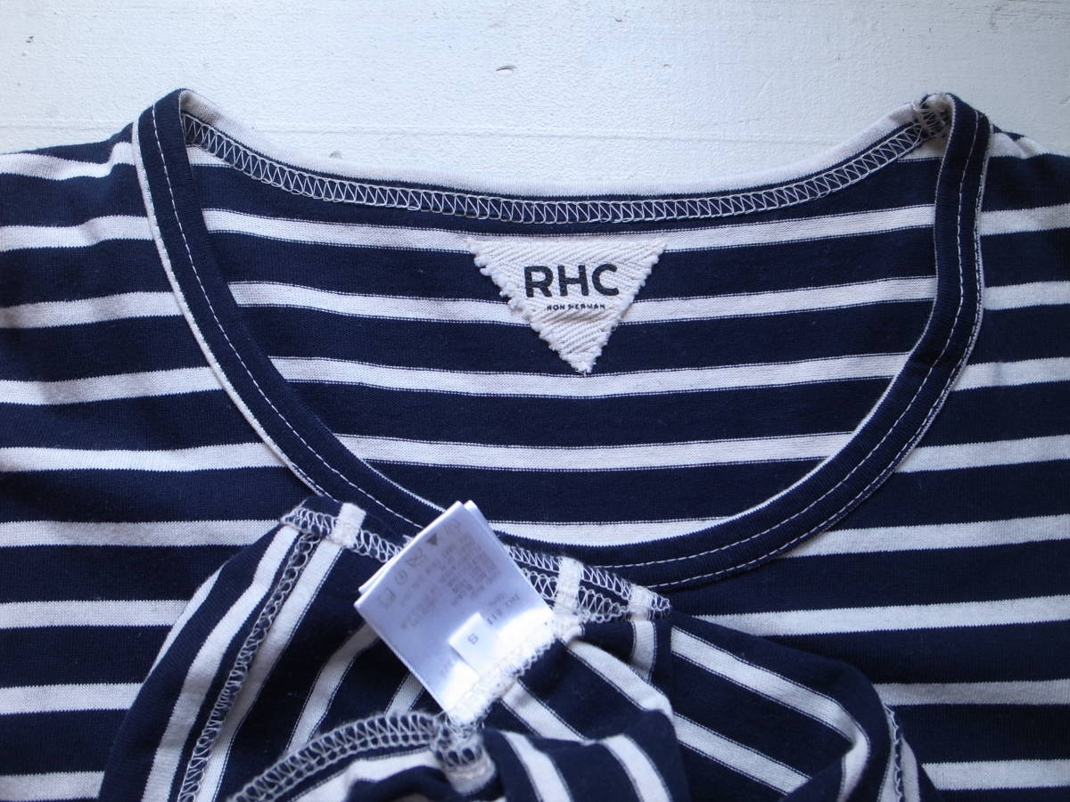 RHC ロンハーマン ボーダー柄 七部袖 ロングカットソー S 日本製 ネイビー×ナチュラル