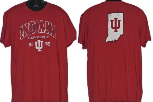 フロントに、大学名とチームロゴが、背面にはインディアナ州とロゴが、ラバープリントされております。いずれのプリントも、かすれた仕様となっています。