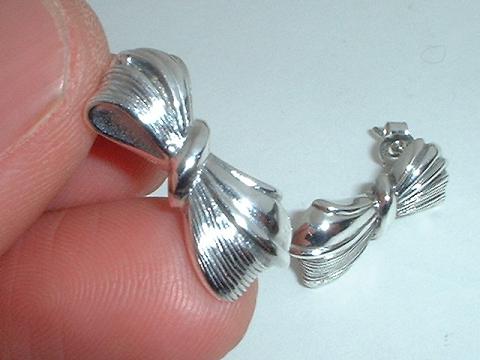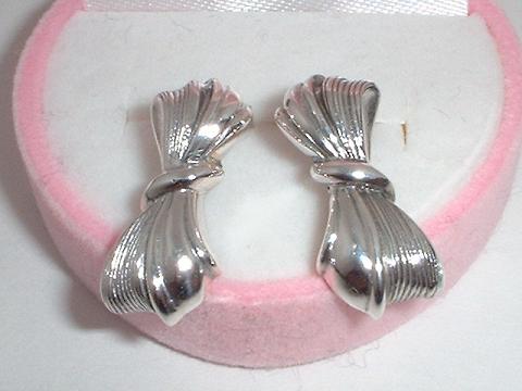 ★完売寸前★新品バーゲン★リボン純銀シルバー925後留キャッチ付ピアス