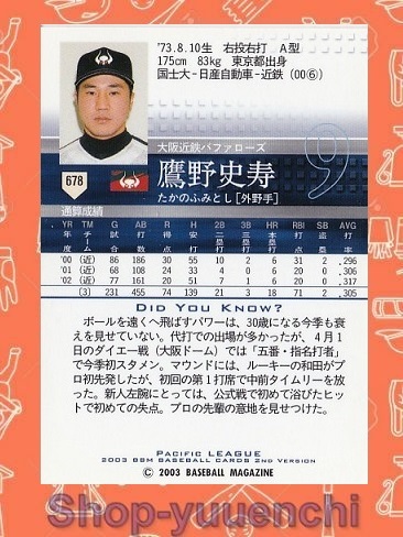 ◇2003◇BBM◇678◇鷹野史寿◇セカンドバージョン◇レギュラーカード◇複数落札まとめて依頼対応◇クリックポスト(追跡可)185円発送◇