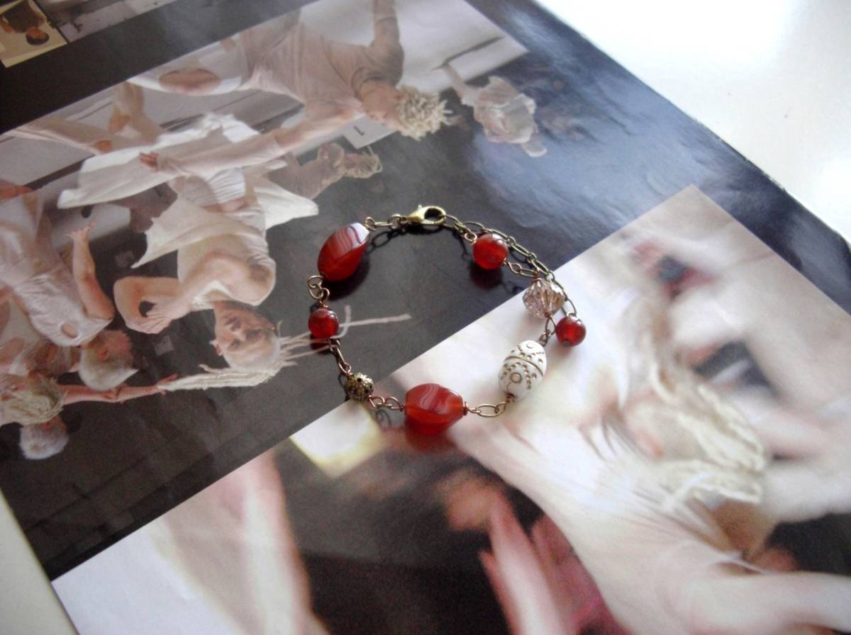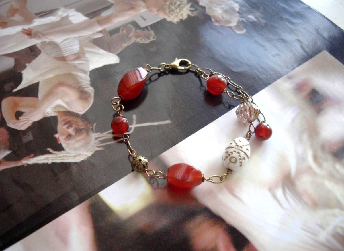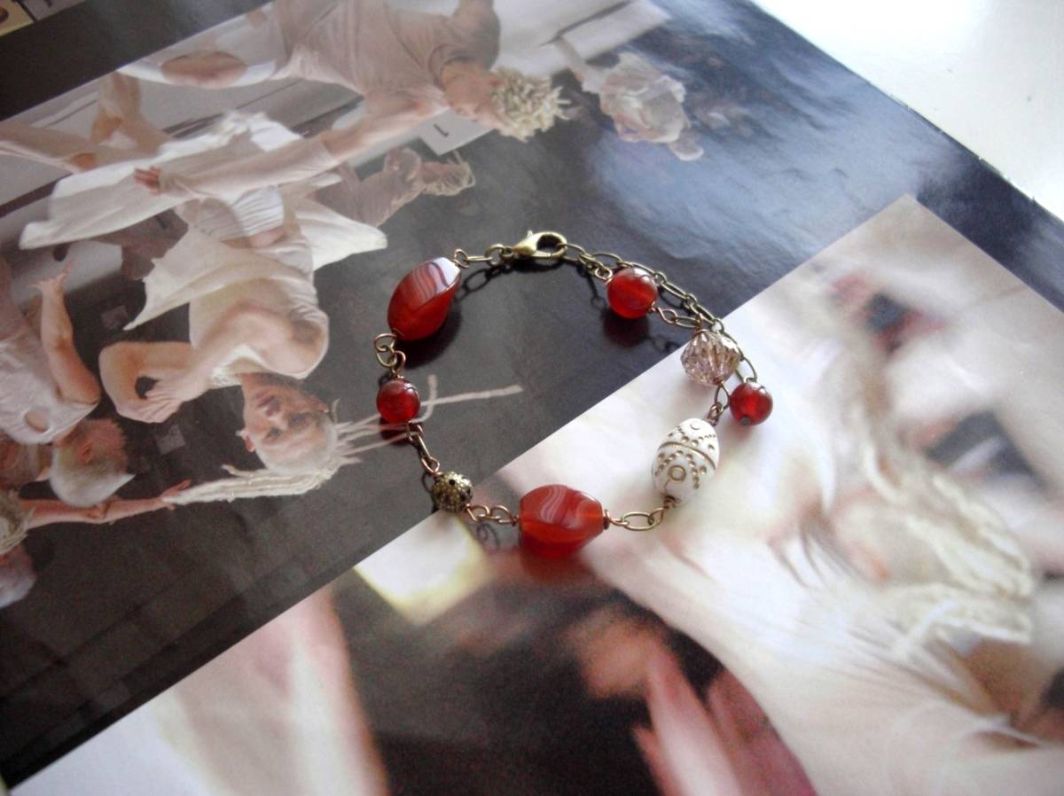 モダン・ガール・・シリーズでス♪シックなカーネリアン・シックなカーネリアンのブレスレットです♪6ミリ、8ミリの丸玉や10ミリから18ミリ位までのナ ツメカットなどデザイン違い、大きさ違いのカーネリアンにチェコビーズやベネチアビーズ、透かしビーズを合わせてオリエンタルな表情です♪長さは全長23 センチ位で調節自由です♪お 揃いのネックレスやピアスも出品しています♪シンプルで飽きのこないいつまでも着けられるデザインを考えて作りました!ハンドメイドをご理解頂いて ノークレーム、ノーリターンでお願いします