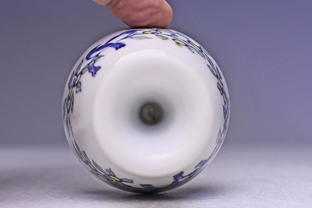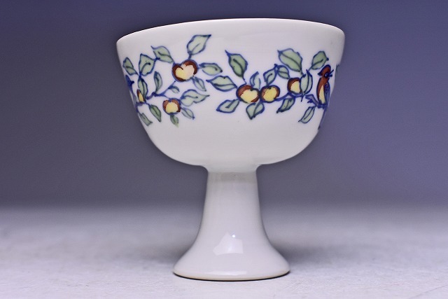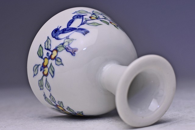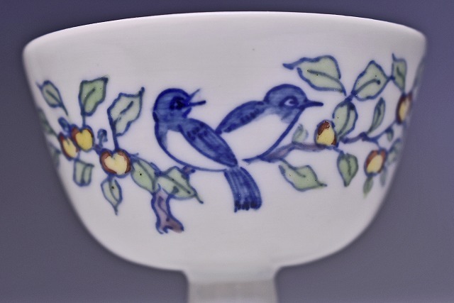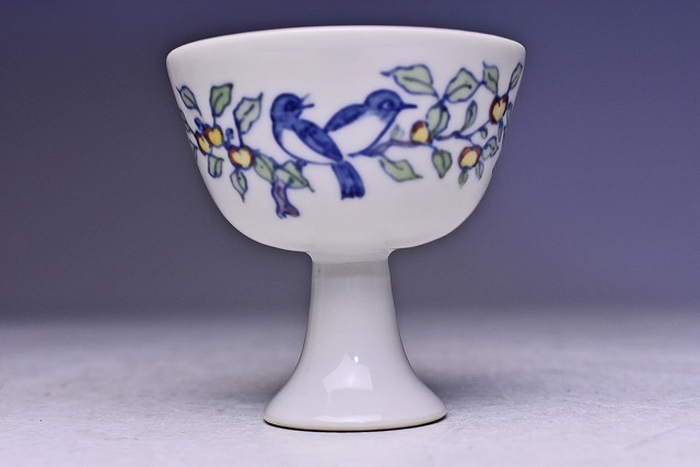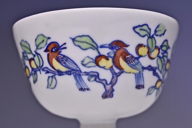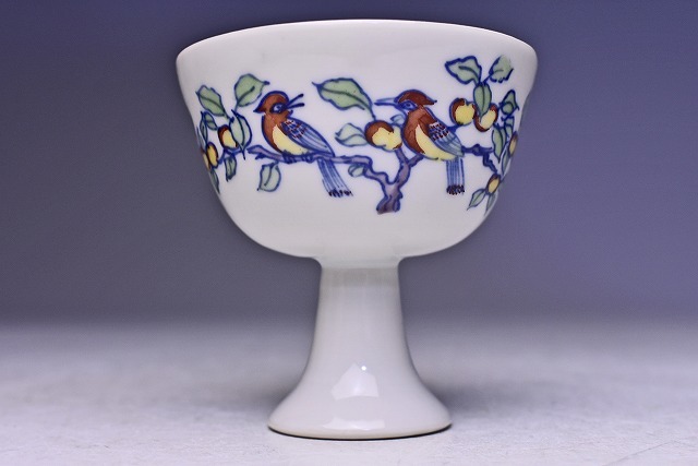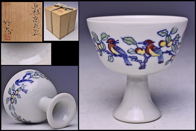 川瀬竹志 ★ 豆彩鳥文高足ぐい呑 ★ 共箱 ★ 酒器 ★京焼★小品ながら丁寧な絵付の見事な逸品★検 川瀬竹春 川瀬順一 川瀬忍 ★