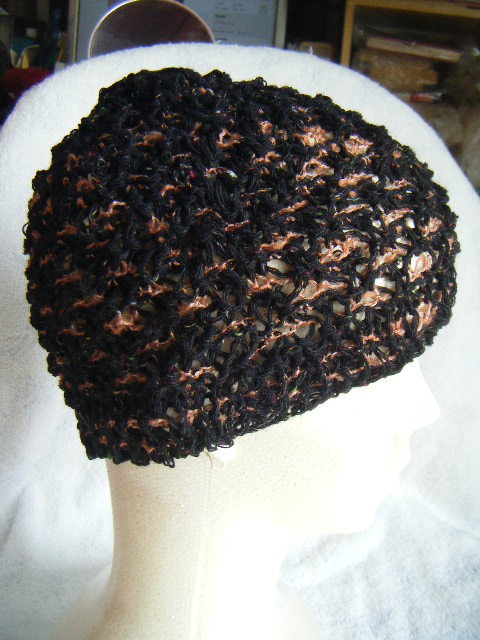 春~秋*手編み男女兼用キャップ*やや短め/耳出し用にも*黒にアクセント色   35
