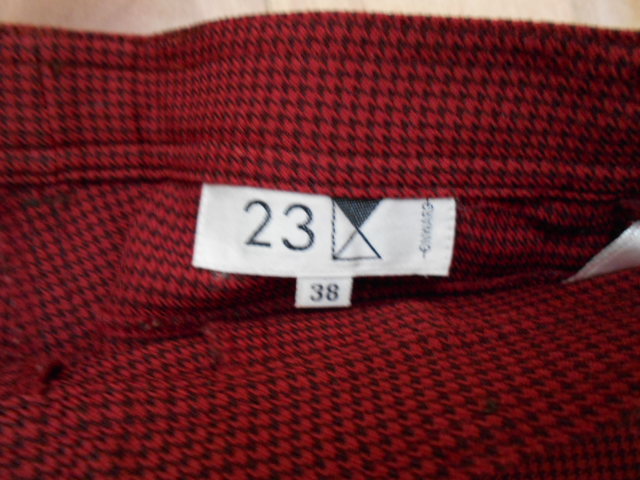 23区のボトムスです。千鳥格子柄が素敵です。*お色: 落ち着いた少し暗めの赤×黒 *サイズ:38MS位 (実寸)ウエスト32㎝、ヒップ43㎝、総丈102cm、裾幅20㎝(平置きの状態です。素人寸法のため、多少の誤差のあることをご了承ください)*素材:品質表示がありませんが、ウール混で秋~冬にかけてのアイテムです。*着用回数が少ないので、まだまだ気持ちよく着ていただけると思います。出品に当たり十分注意してチェックしておりますが、自宅保管なので見落としもあるかもしれないので細かいところを気になさる神経質な方はご入札をご遠慮ください。*お安く提供させていただいておりますので、ノークレーム&ノーリターンでお願いいたします。