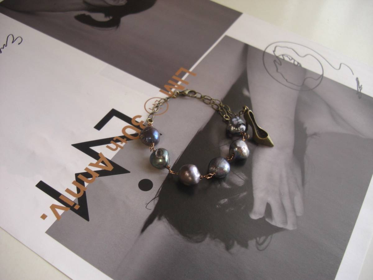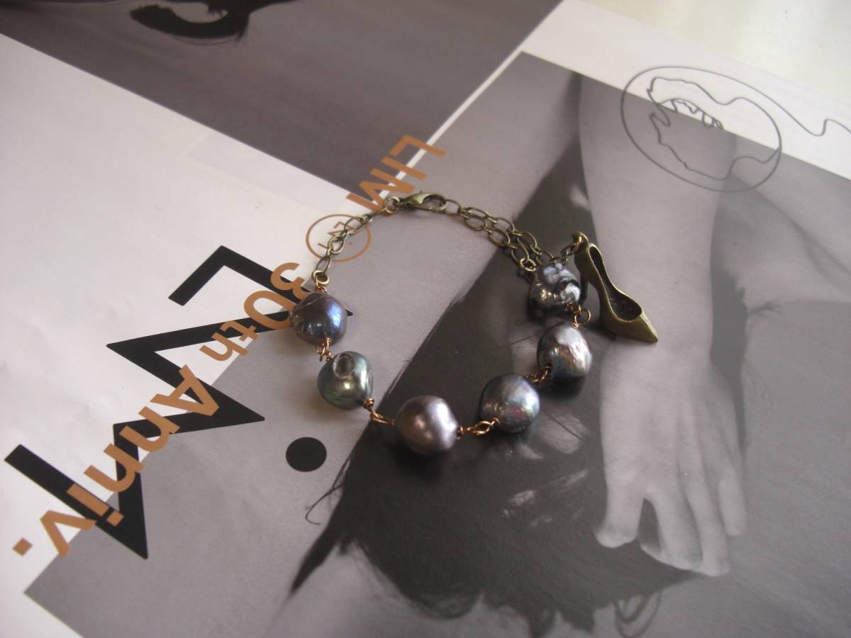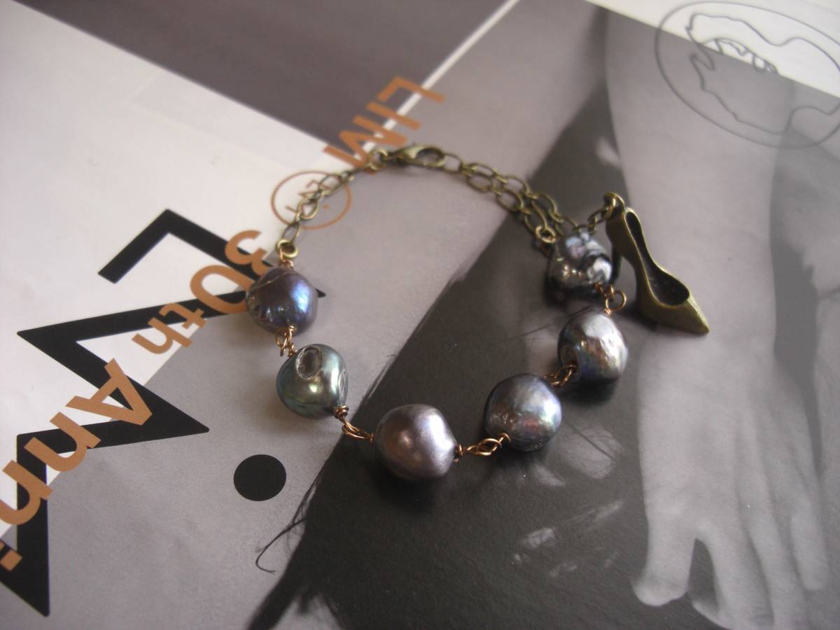 シモーヌの首飾り・・シリーズです♪大人色を繋いで・・シックなグレーの淡水パールのブレスレットです♪個性的なバロックの淡水パールは 12ミリ位の大粒で存在感があります♪カジュアルからフォーマルまで楽しんでいただけます♪長さは全長23センチ位で調節自由です♪ お揃いのネックレスやピアスも出品しています♪シンプルで飽きのこないいつまでも着けられるデザインを考えて作りました!ハンドメイドをご理解頂い てノークレーム、ノーリターンでお願いします