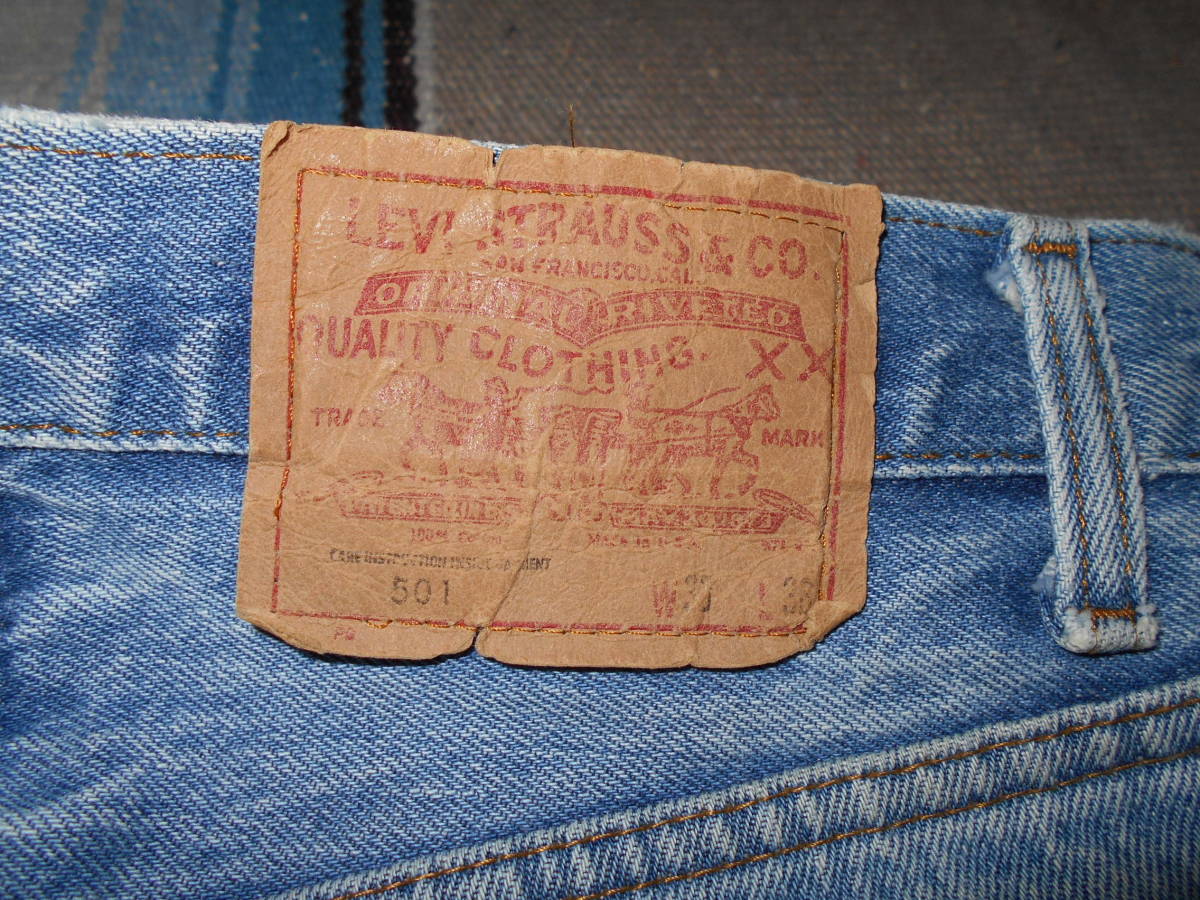 1980年代生産、本国アメリカ サンフランシスコ リーバイスUSA 正規規格、セルビッチが廃止されて間もない頃の 501 MADE IN USA、紙パッチの 501上 CARE INSTRUCTION INSIDE GARMENT 表示、インナーにリーバイス赤エンブレム入りになる以前の白ラベル付き 1980S ビンテージ オリジナル MADE IN USA