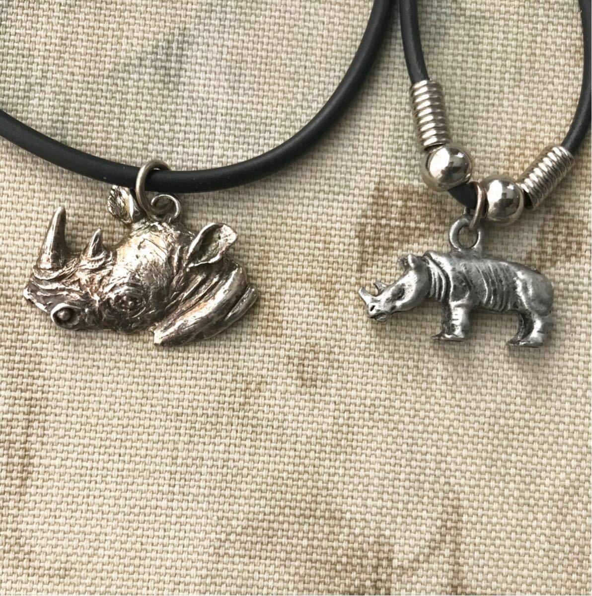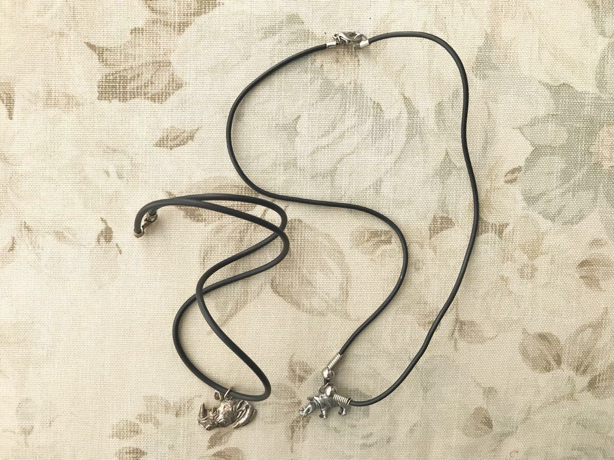 サイモチーフのペンダント2点。