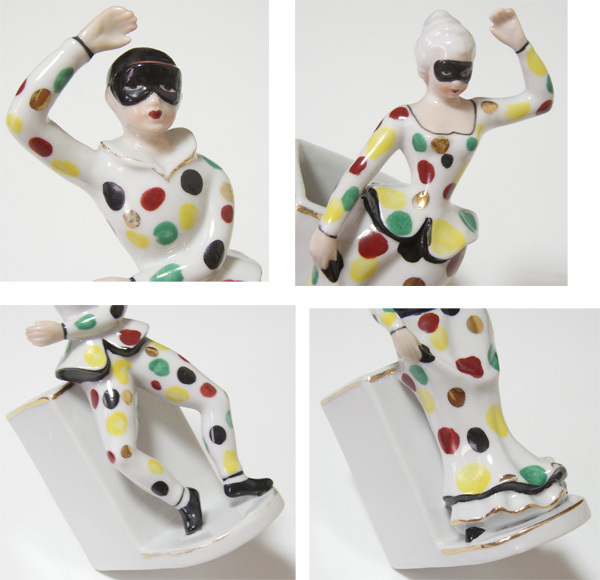 ヴィンテージ ハーレクイン ペアです。状態は、古い物ですので、擦れや薄い汚れと、経年による金色のはげなどありますが、ビンテージの雰囲気ある物です。アメリカで購入しました。デザインや作りがとても可愛いです。裏側にシールが残っています。古い物ですので、状態はそれなりですが、年代物の風格とレトロ感ある珍しい物です。高さ 17.5cmと、18.5cm、台座の奥行き 10.5cm、台座の横幅 5.7cm、プランター口の縦 5.5cm、横幅 6cm、高さ 9cmです。ビンテージ物とご理解頂いて、ノークレーム、ノーリターンでお願いします。