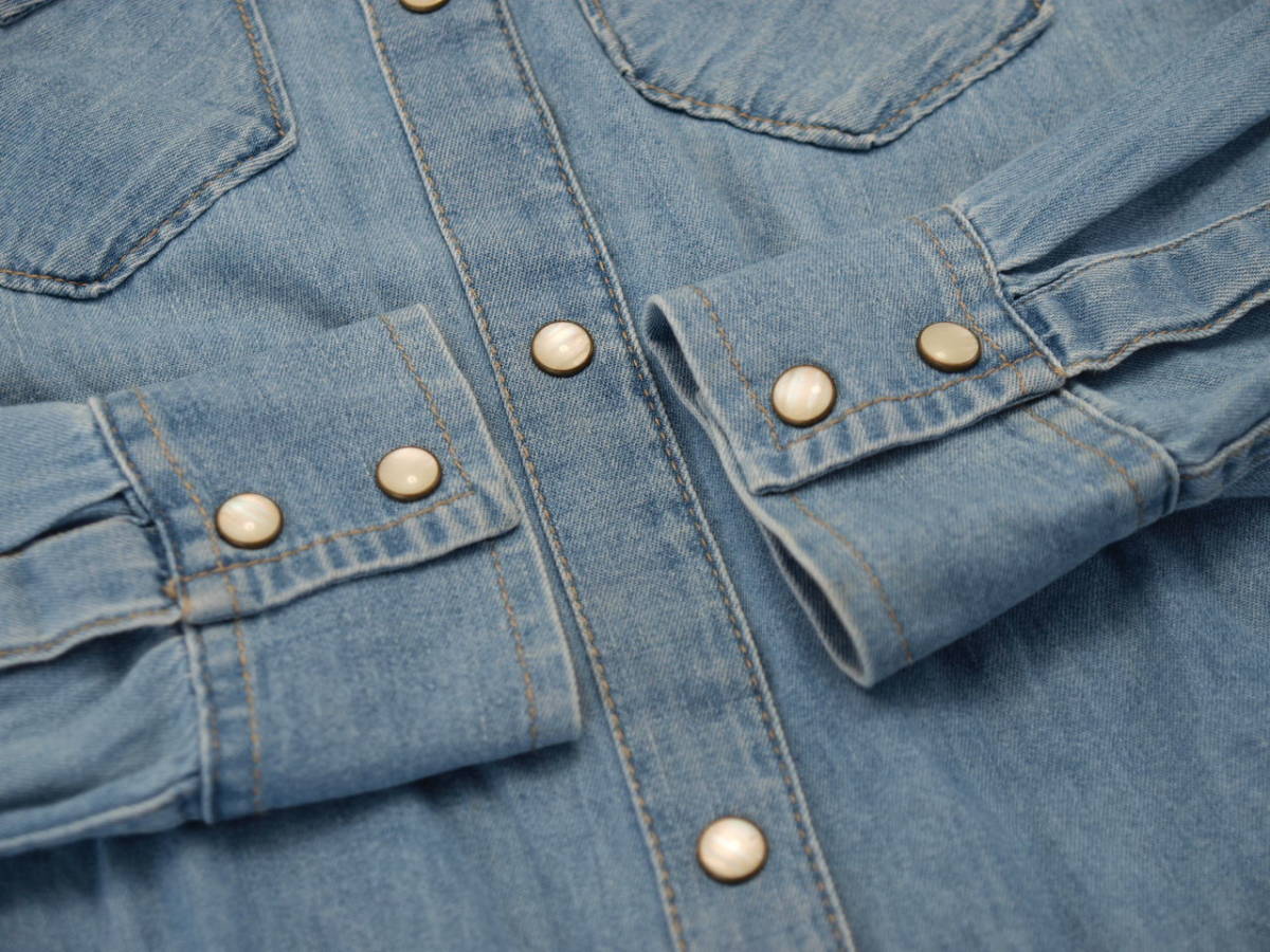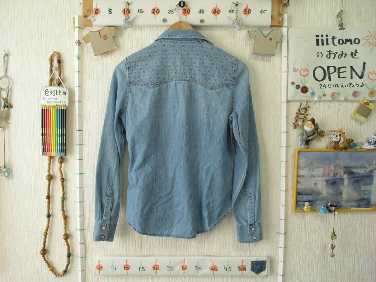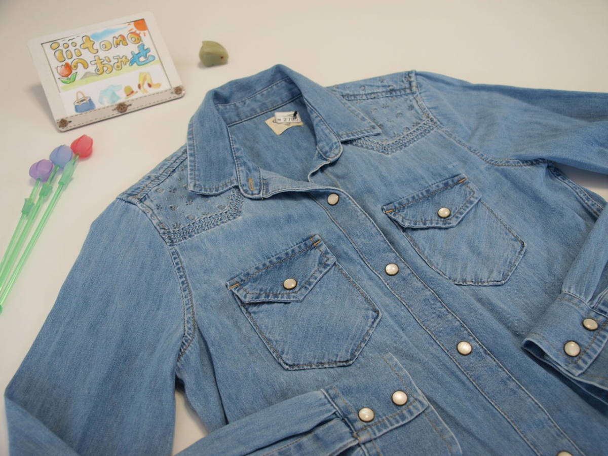 商品の補足説明(主観的な内容も含む) 自然な感じで程よく色落ちがあり、生地も程よい柔らかさになっています。 気になるような汚れはありませんが、左胸あたりにミシンで傷を補修した個所があります。(写真参照) 一番上以外は、スナップボタンです。 シャツとしてはやや厚めですが、デニムシャツとしては普通くらいです。 タグ表記は【XXS】サイズとなっていますが、レディースのМまたはL位のような気がします。かならず3枚目の寸法写真でサイズをご確認ください。 |