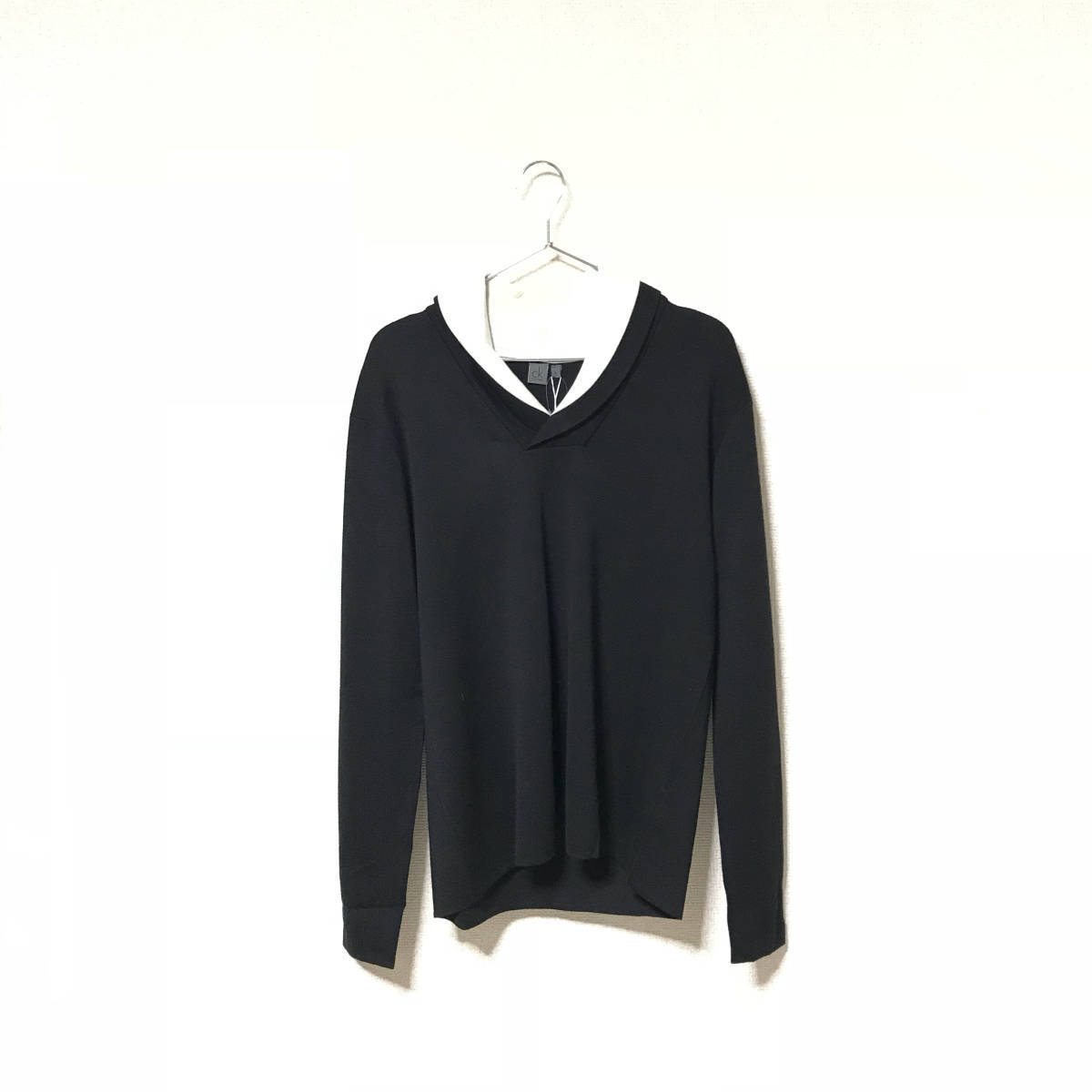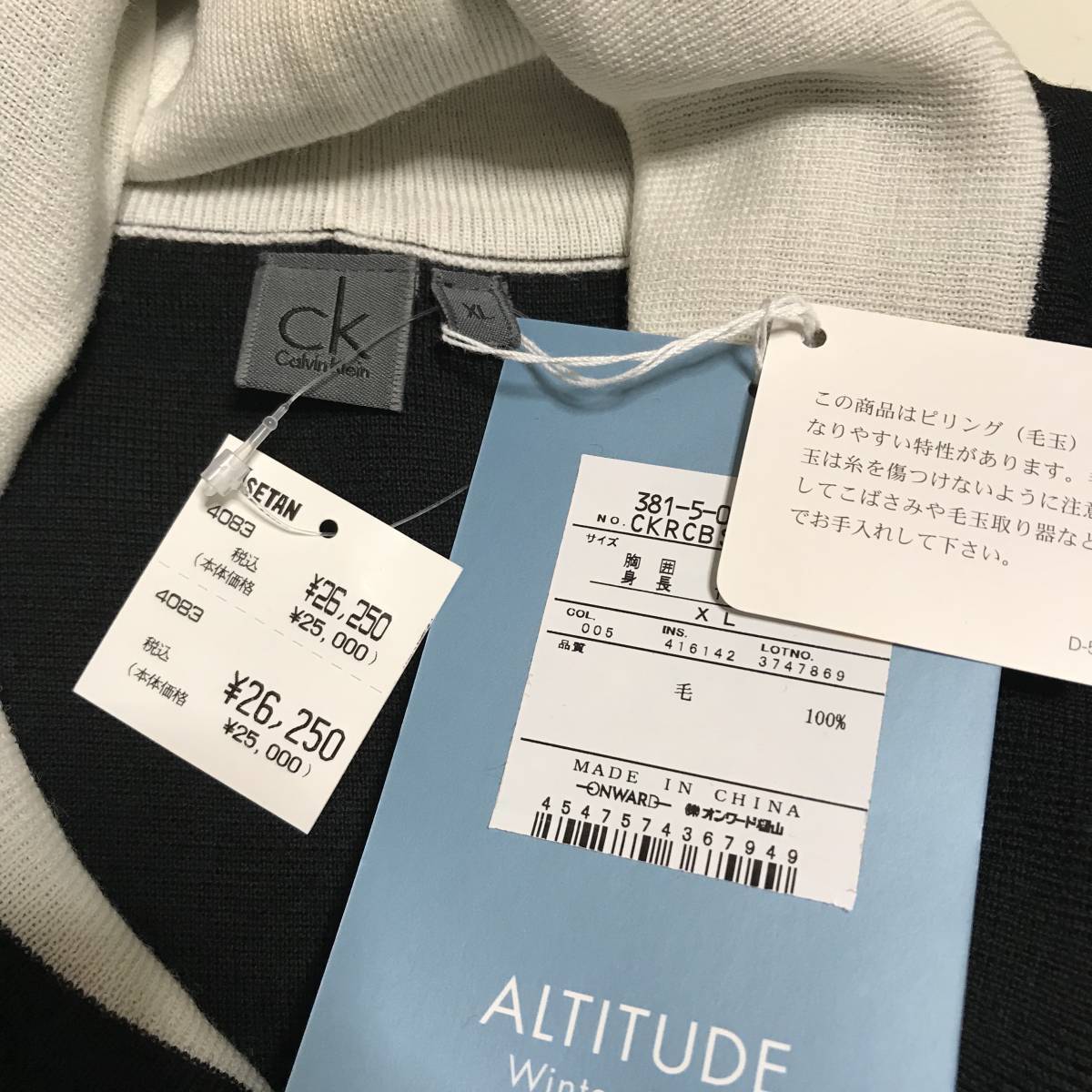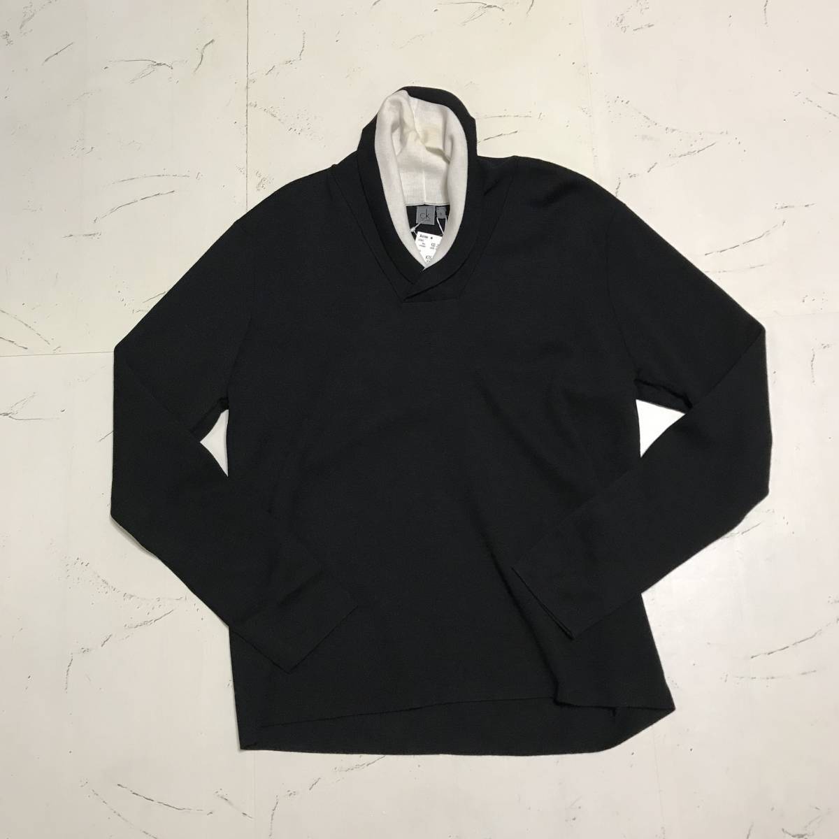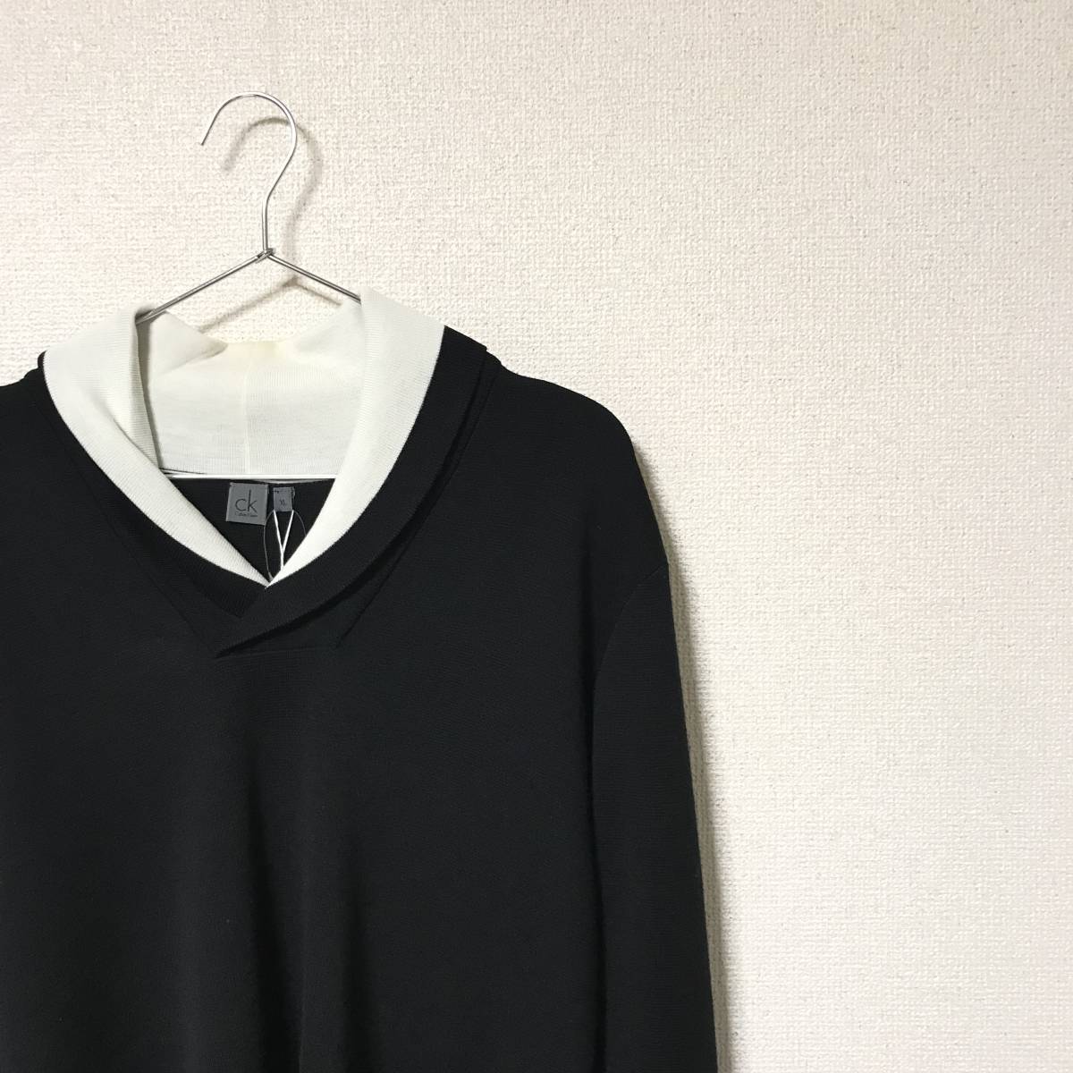 訳あり 未使用★Calvin Klein カルバンクライン ニット プルオーバー セーター オープンネック 黒 ブラック size XL メンズ オンワード樫山