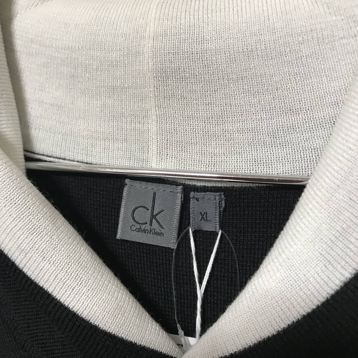 訳あり 未使用★Calvin Klein カルバンクライン ニット プルオーバー セーター オープンネック 黒 ブラック size XL