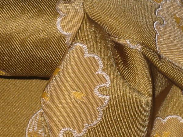 女性yukata用、地紋柄結び帯  枯れ草系色  ポリエステル  新品(織り地紋柄ありです。波状の写りはレンズの光学的ないたずらで現品にはありません、また薄く濃く写っている場合もあります)、胴部--帯巾約16,5cmx長さ約130cm、リボン部は横に約30cm。見た範囲で汚れないと思いますが、着用に差し支えない薄汚れ(多分ない?)はあってものお値段で出品です。