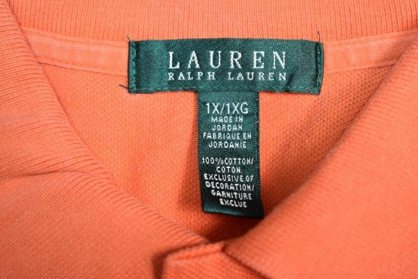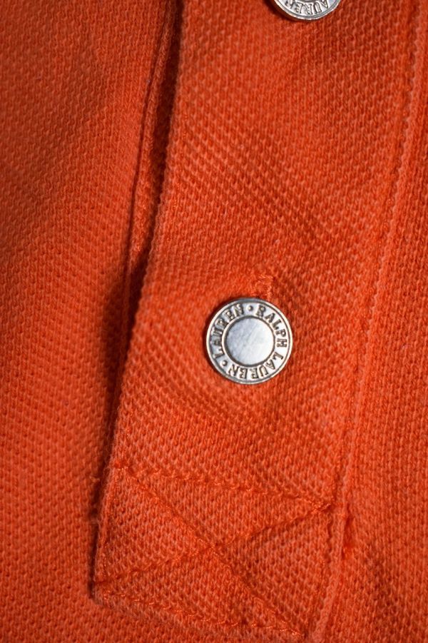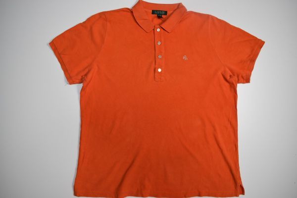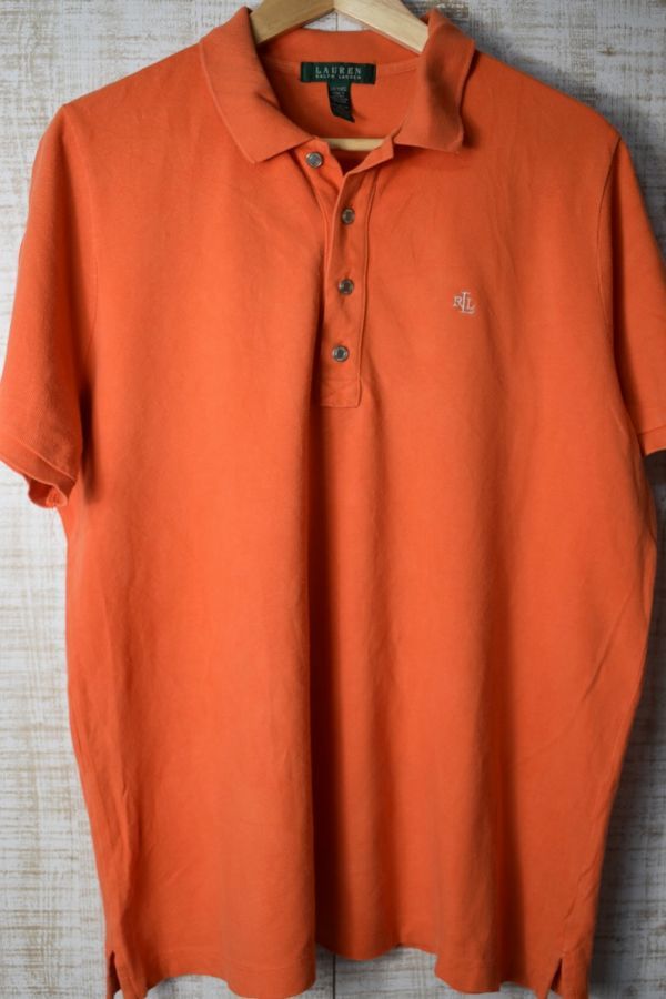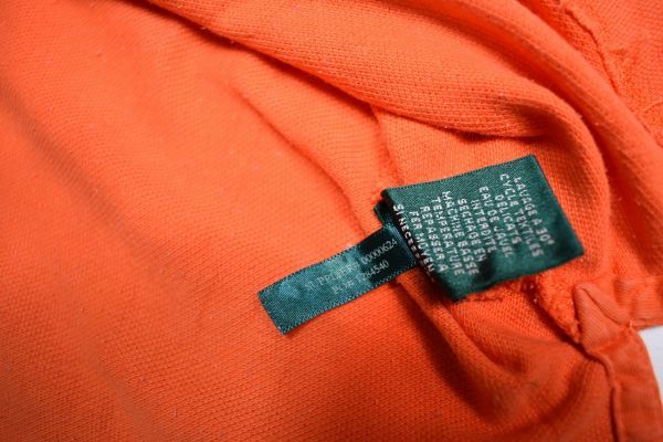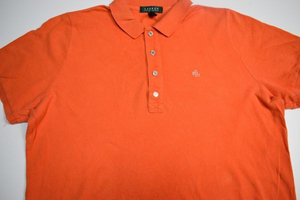 ●US USED LAUREN Ralph Lauren ラルフローレン ポロシャツ ロゴ刺繍 オレンジ レディース【XL】鹿の子