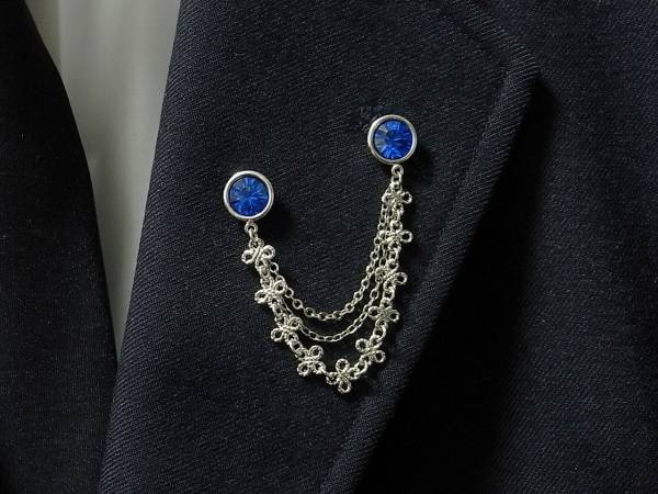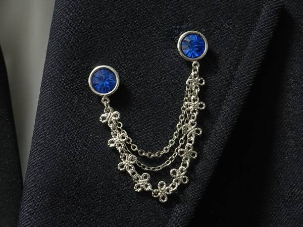 カリブブルー・スワロフスキー・飾りチェーンWラペルピン☆新品・即決