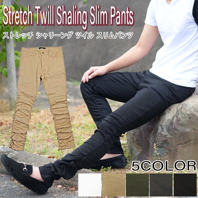 無地(プレーン)/ストレッチ素材/シャーリング/クシュクシュ/細身/細目