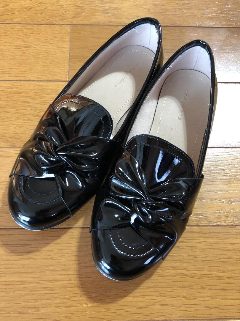 1度のみ使用しました、ZARAの女の子用黒エナメルローファーです。合皮です。