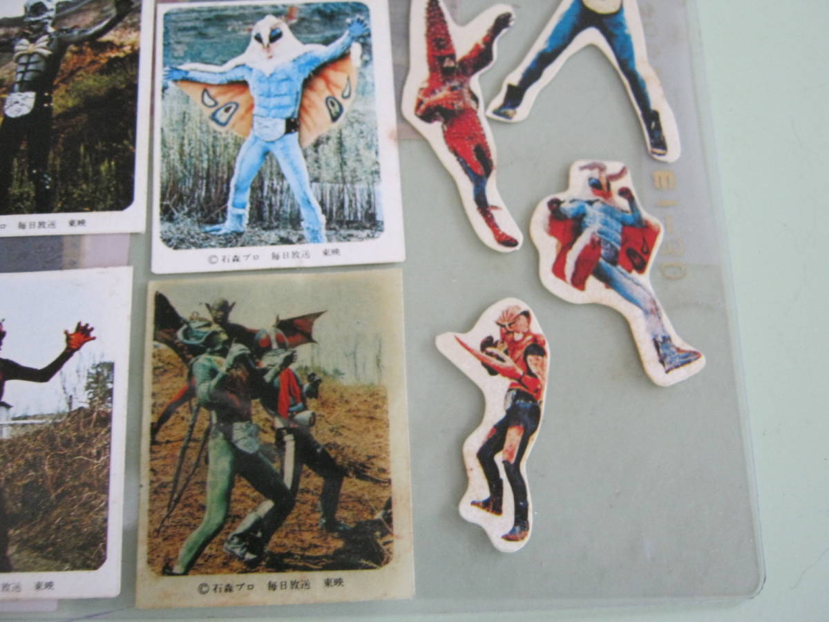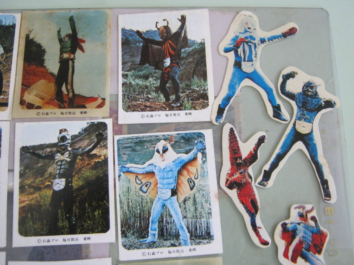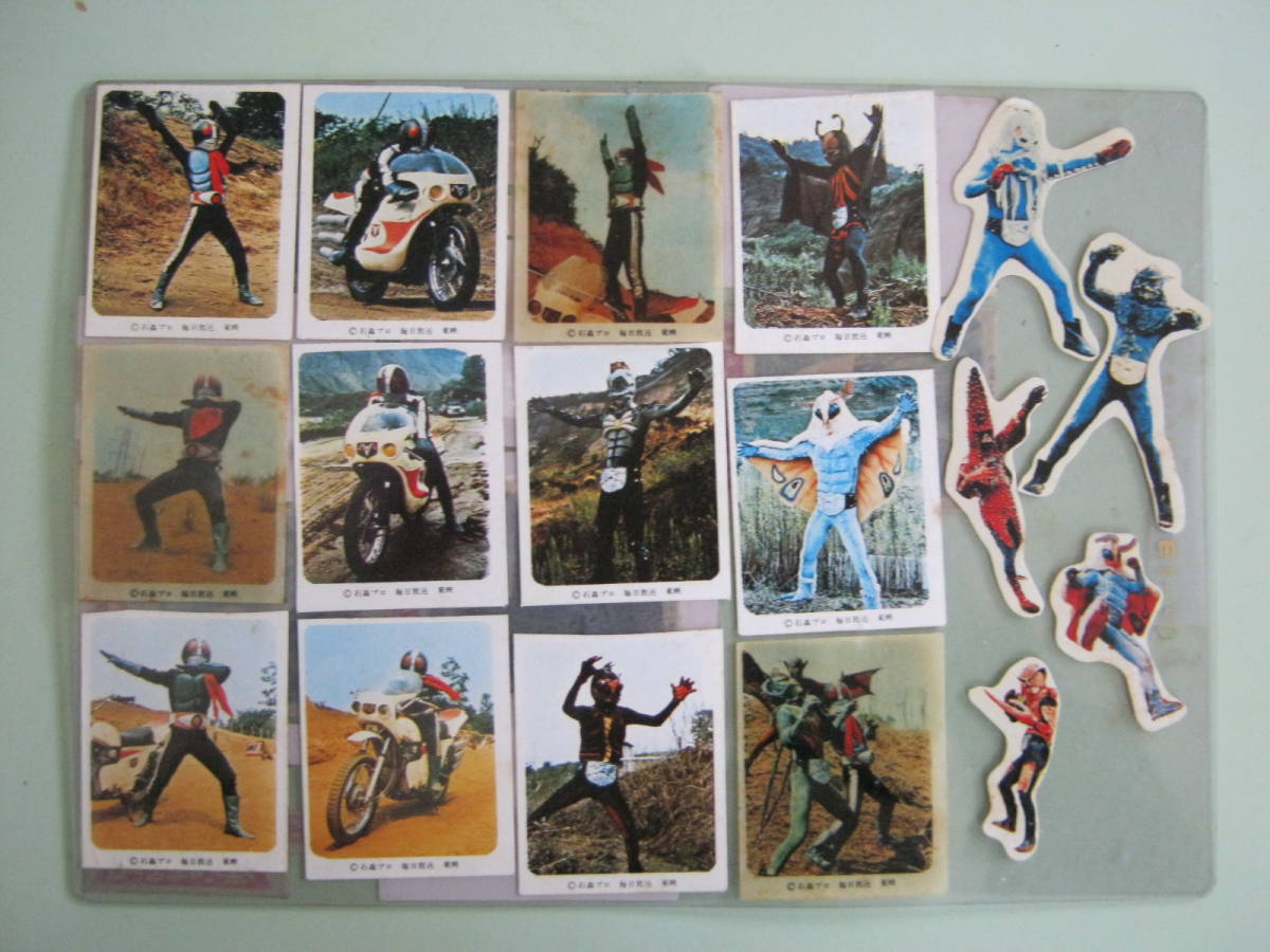 当時物です。使用済みでジャンク品です。下敷きに貼ってあるロッテ キャンディ 仮面ライダーシールです。下敷きに全て貼ってあります。下敷きの表、裏面に20枚(20種)貼ってあります。下敷きにロッテ キャンディの仮面ライダーシールではない仮面ライダーの型抜き怪人シールが55枚貼ってあります。貼ってあるシールの状態はシミ、汚れ、折れ、キズ、切り落としがある物があります。切り落としはロッテ キャンディ 仮面ライダーシール20枚(20種)内12枚(12種)にシールの上の部分のロッテ キャンディの印字された部分が切り落とされていて切り落とされた部分だと思われる部分(ロッテ キャンディの印字がある部分)10枚は下敷きに貼ってありますがシール2枚分の上部分が欠品しています。シールの劣化で下敷きからハガレている物があります。シールのサイズは切り落とし無い物で約6.5㎝×4.5㎝位です。各、ロッテ キャンディ 仮面ライダーシールの下の余白部分に丸の中にCの文字 石森プロ 毎日放送 東映の印字があります。シールの貼ってある下敷きサイズは約25㎝×18㎝位です。以上判るだけ書きましたが写真、質問等で判断お願い致します。落札後はノークレーム、ノーリターンでお願い致します。発送は日本郵便のレターパック ライト(¥430円・梱包時の厚さ3㎝以内・追跡番号付きです)にての発送です。落札金額+¥430円です。品物に保険がついておりません。紛失、破損の場合 当方は補償の対応できません。保険付き発送希望の場合ゆうパックにて発送致します。発送方法は以上の方法でしか対応できませんのでご理解の上 入札お願い致します。