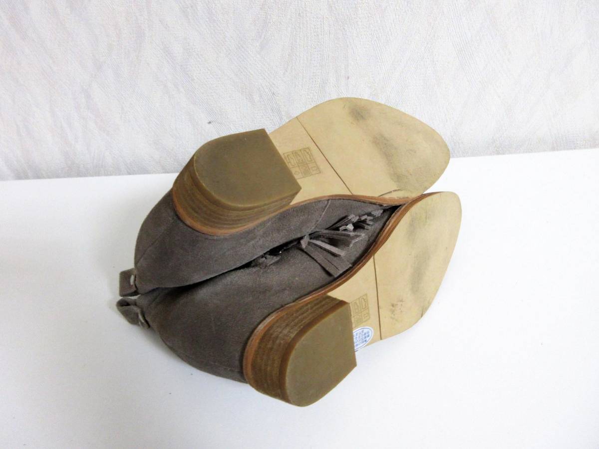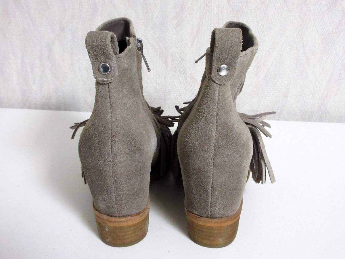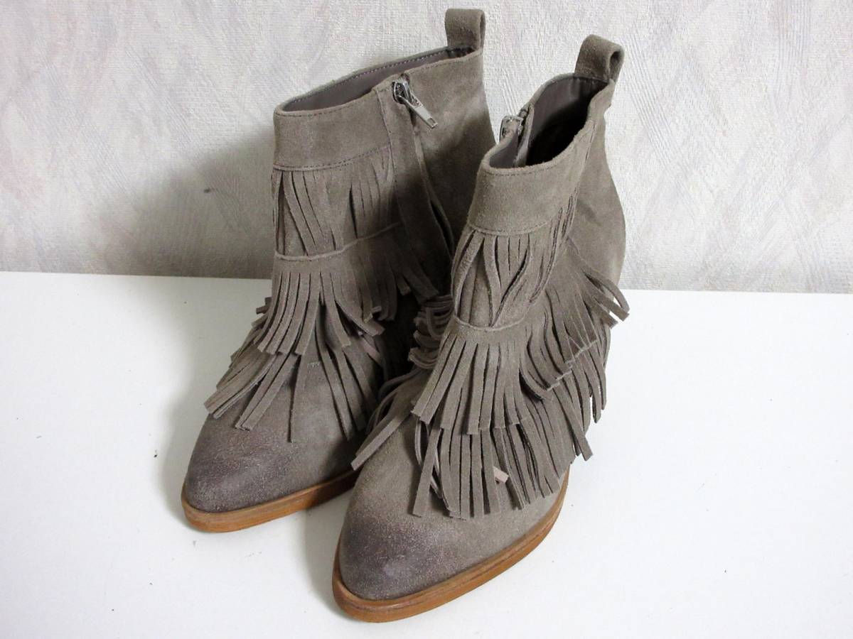 スティーブマデン STEVE MADDEN インヒール レザー フリンジ ショートブーツ ベージュ 5 1/2B 南1439