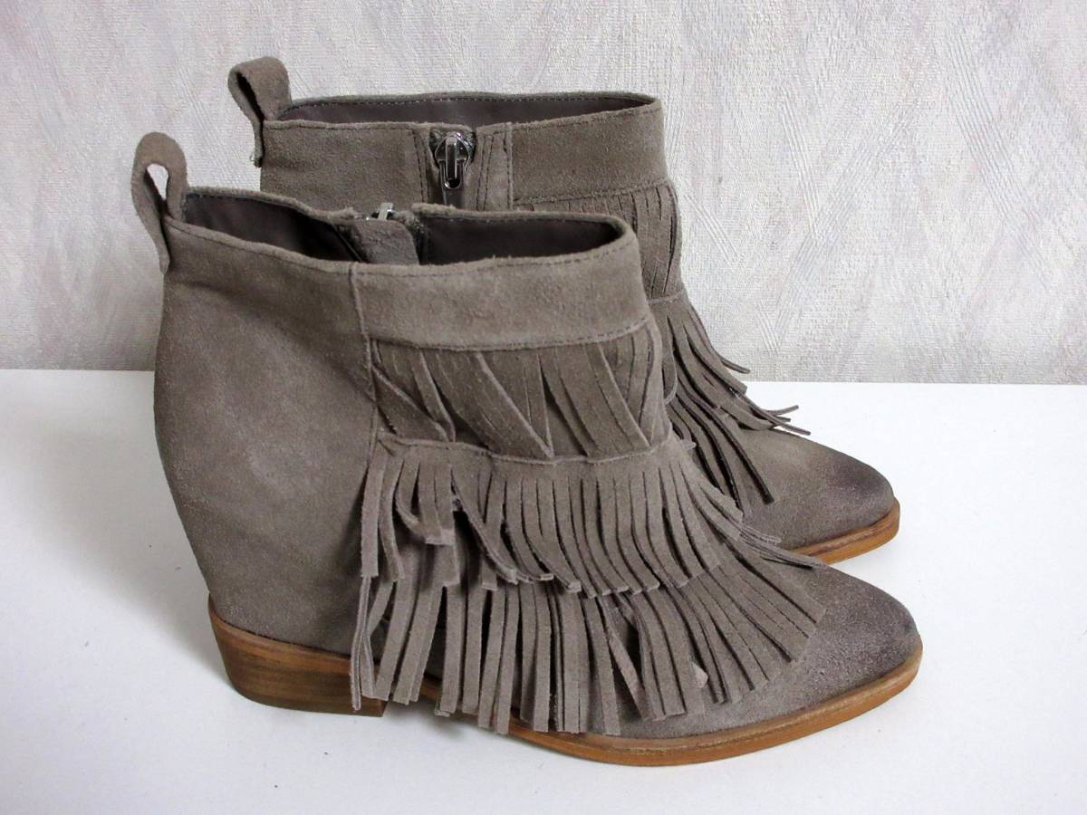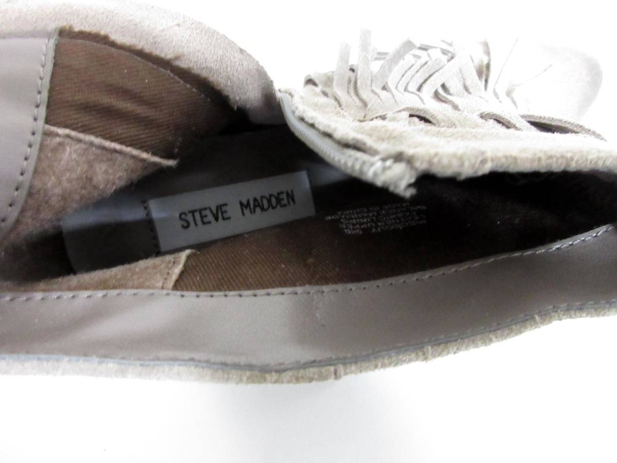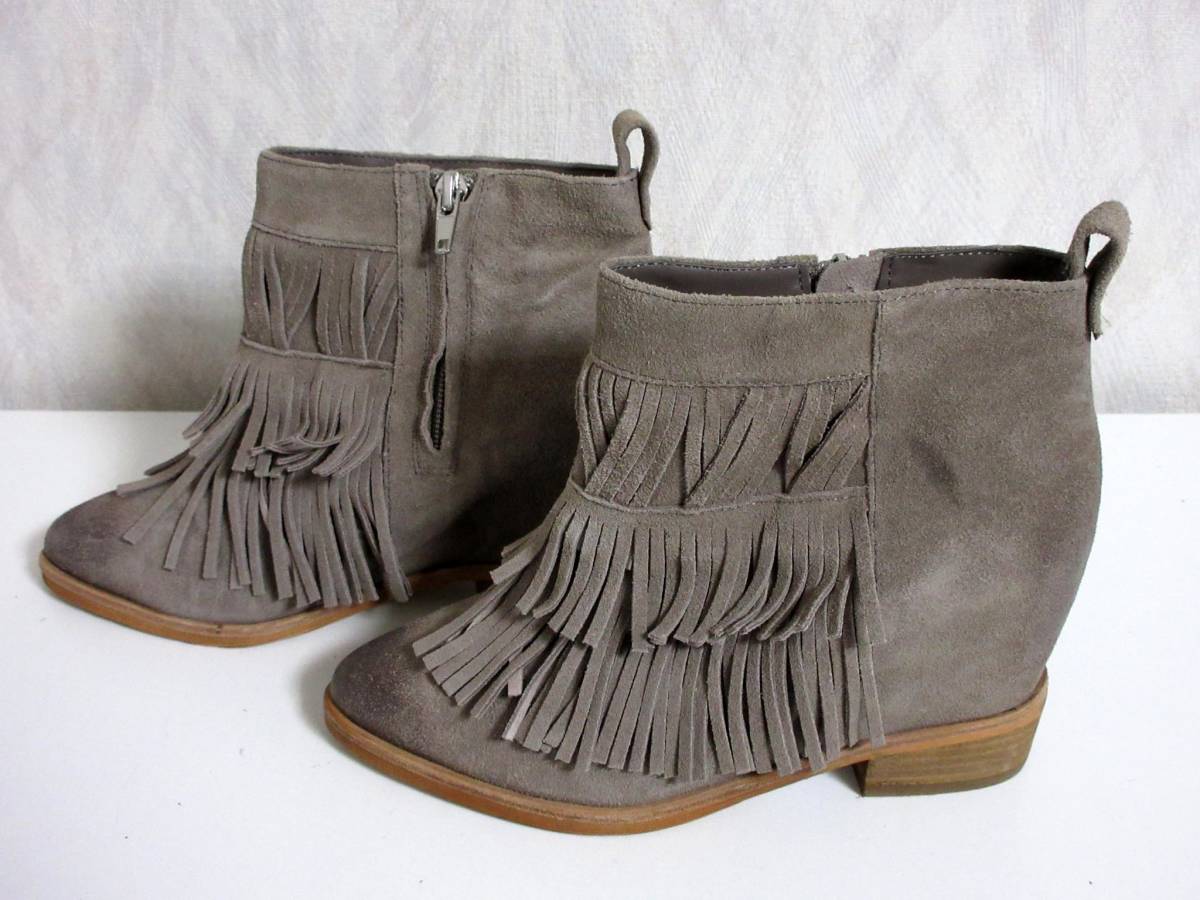 スティーブマデン STEVE MADDEN インヒール レザー フリンジ ショートブーツ ベージュ 5 1/2B 南1439