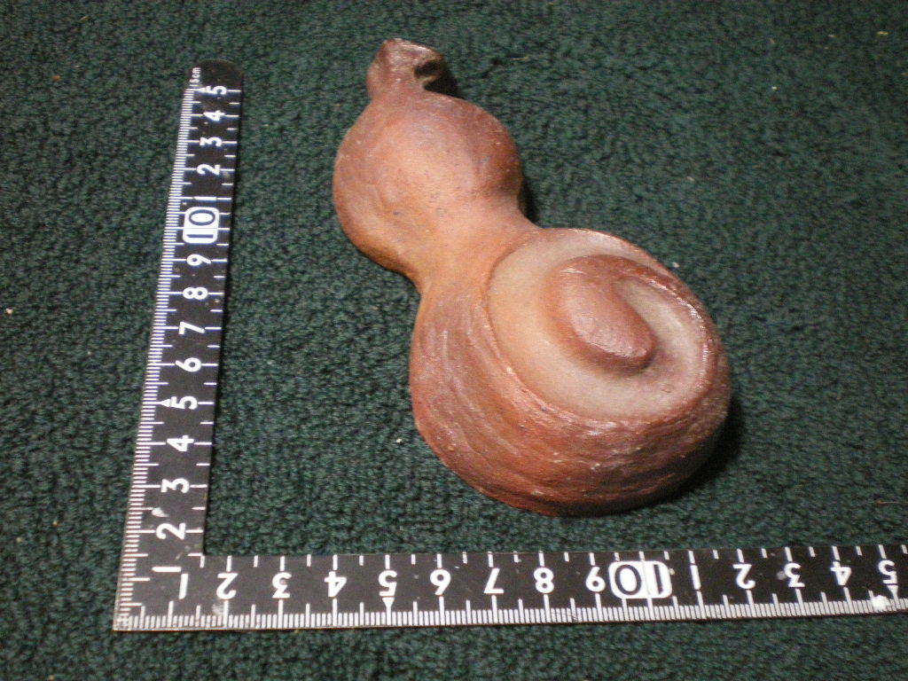 珍品フリマ・送料無料] なんだかわかりません 素焼きではなく上薬あり 使用の気配(ホコリ)付き ひょうたん形 重さ159g 文鎮に?