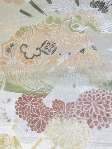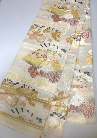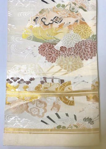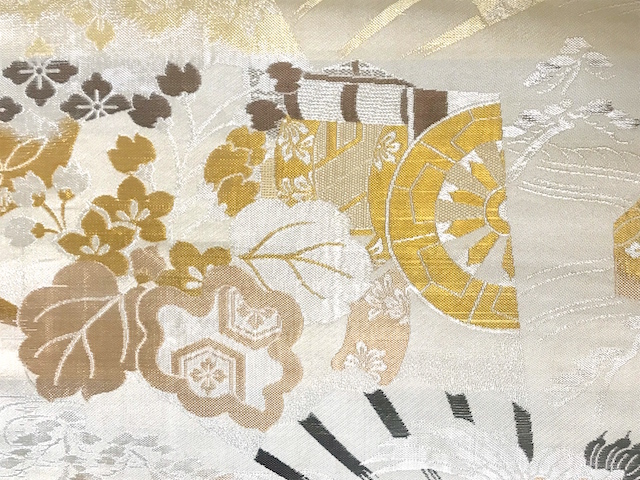 桐☆鶴☆菊☆御所車☆丸帯☆オフホワイトベージュ生成り【花あかり】