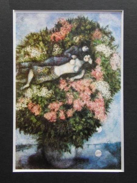 マルク・シャガール、ライラックの中の恋人たち、希少な額装用画集より、新品高級額装付、状態良好、送料無料