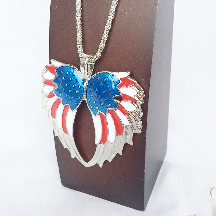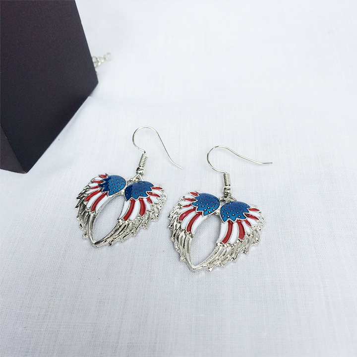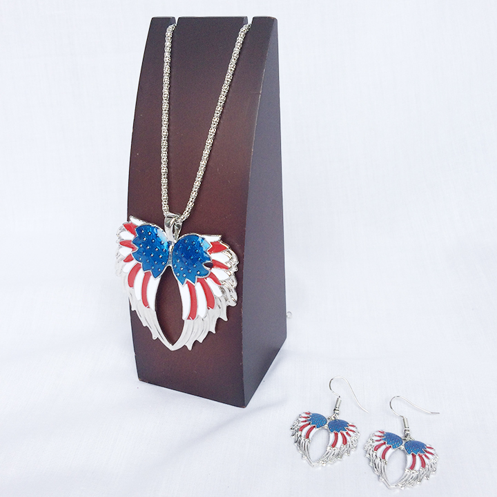 US国旗のトリコロールカラーの翼スタイルネックレス&ピアス左右の2点セットです。