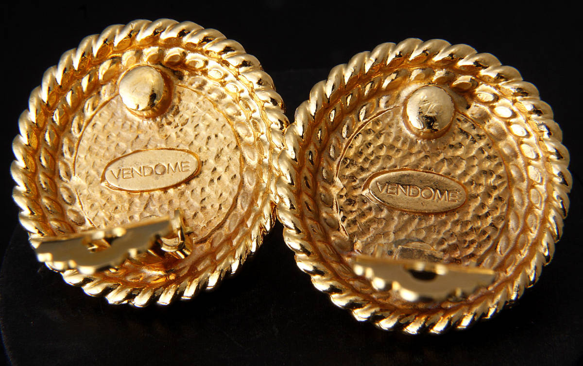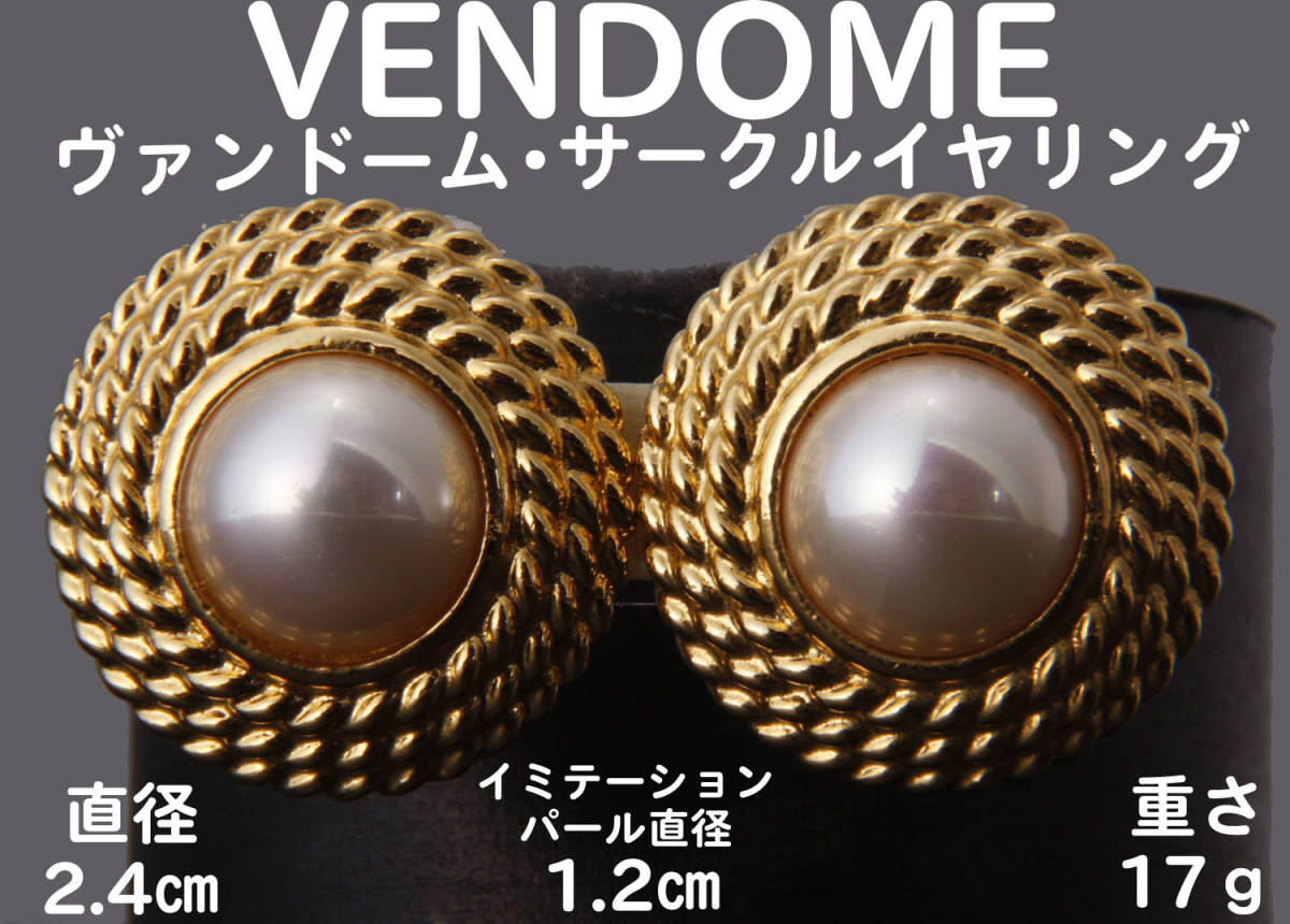 VENDOME ヴァンドーム 丸型イヤリング イミテーションパール&ゴールドカラー 直径2.4㎝ 17g USED