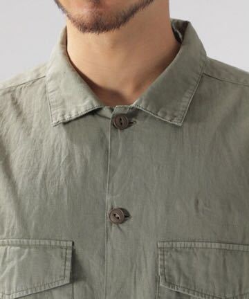 綿麻素材のミリタリーデザイン半袖シャツです。