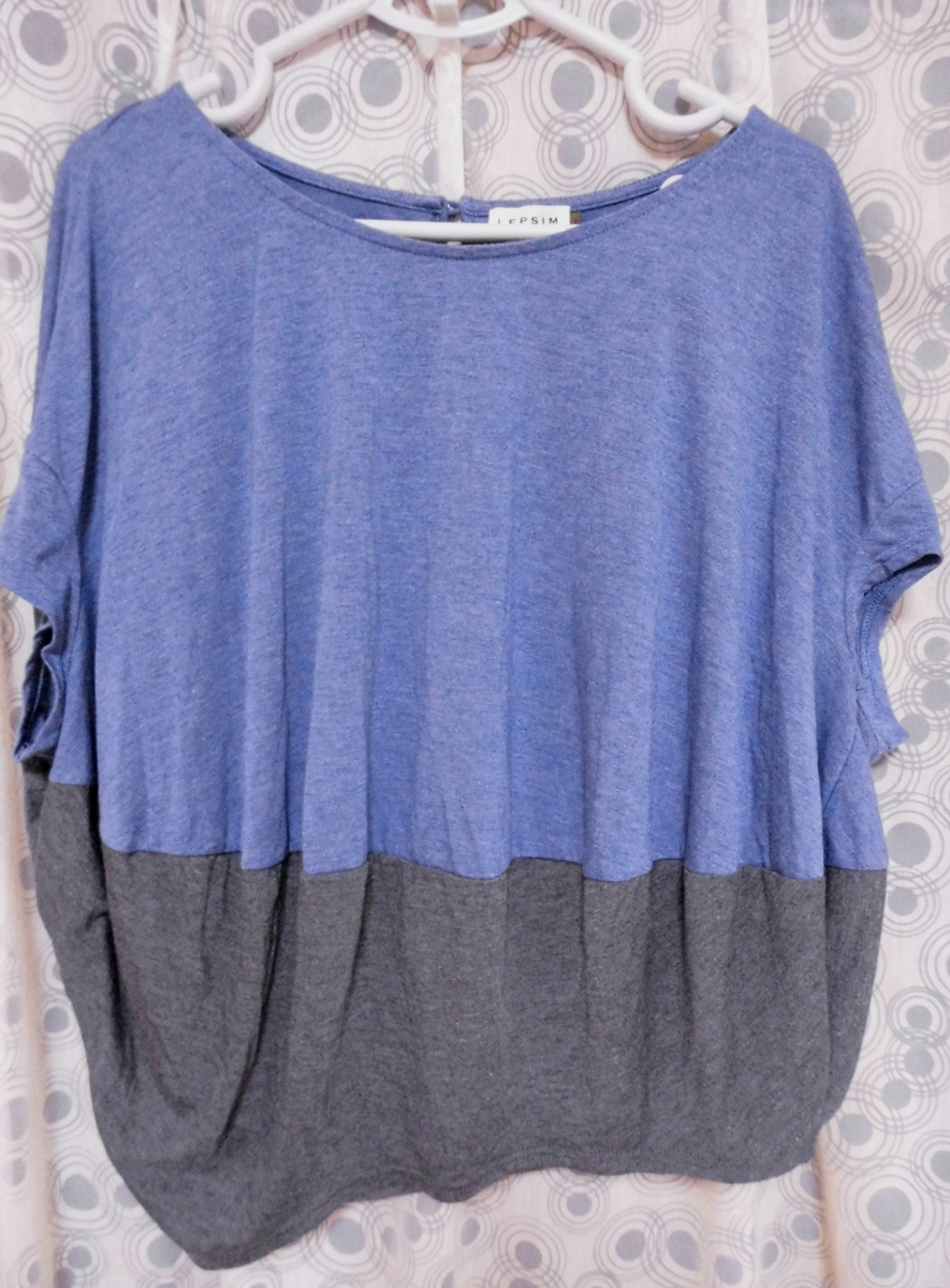 ブルー×グレーのゆったりシルエットのトップスです♪