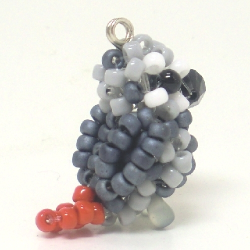 ヨウム マットタイプ ビーズの小鳥★3WAY(ストラップ・イヤホンジャック・ファスナーチャーム)工房小鳥屋さん
