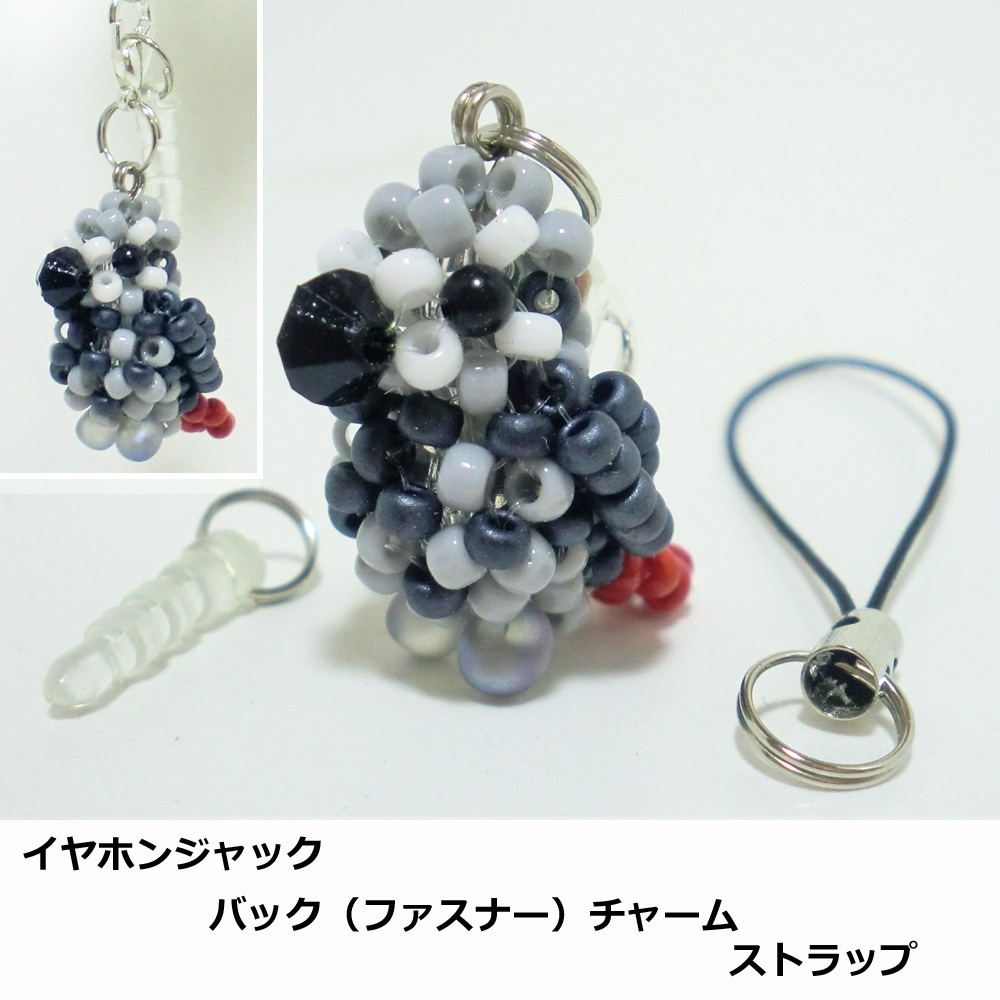 ビーズの小鳥★3WAY(ストラップ・イヤホンジャック・ファスナーチャーム)工房小鳥屋さん