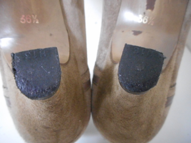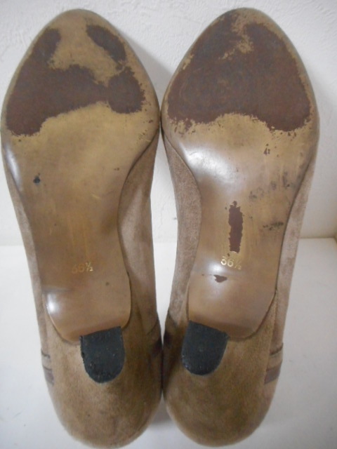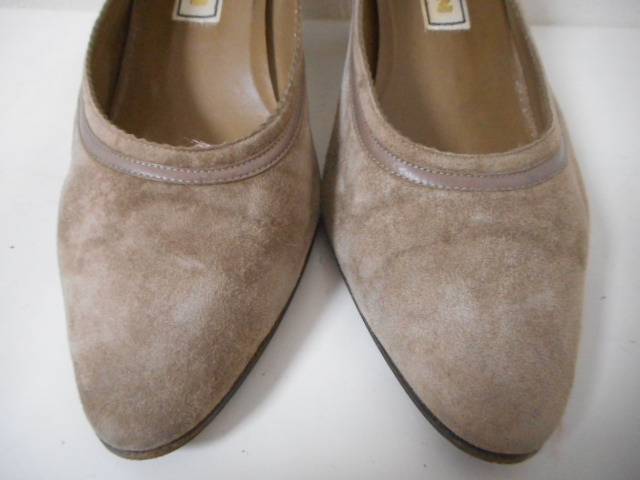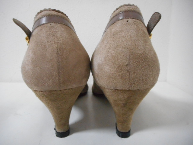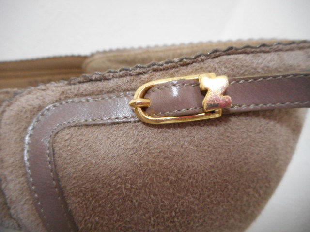| 【ブランド・形態】 NINA RICCI ニナリッチ 本皮革スエード アーモンドトゥ デザインパンプス サイズ36.5(23.0~23.5cm) です。 【カラー】 カーキーです。 掲載の実物写真はPC環境や光の加減により実物と色合いが若干異なる場合があります。 【特徴】 スウェード素材にトリミング・飾りベルトのデザインがニナリッチらしい上品でおしゃれなアーモンドトゥパンプスです! 大人らしい落ち着いたカラーでまとめたパンプス。 ヒールは安定感があり、歩きやすいのが魅力。 普段使いにもフォーマルなシーンにも最適な1足です。 安定感のよいヒールで颯爽と歩いて! ヒール高さ:約6.0cm、 最大幅:約8.0cm 【状態】 少々使用感はございますが、特に目立つダメージは見受けられず、使用に問題無いと思われます。 アッパーは細かな傷・汚れはありますが比較的にきれいです。アウトソール・ヒールはそれなりにすり減りがあります。 箱はありません。 【素材】 アッパー:本皮革スエード アウトソール:合成底 【サイズ】 36.5(23.0~23.5cm) 、 質量:340g | |||