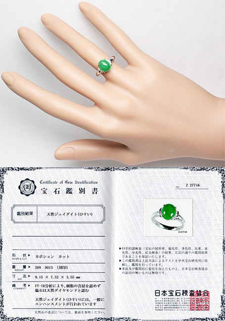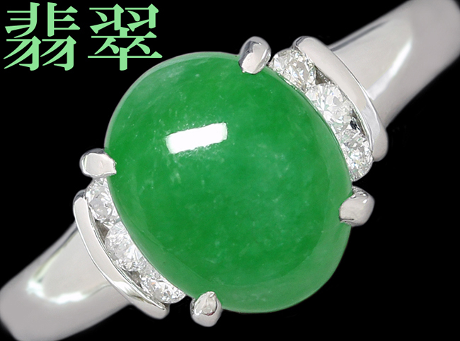 綺麗★ヒスイ 翡翠 ジェダイド 2.09ct ダイヤ 0.13ct Pt900 リング 指輪♪鑑別付・送税込 | ||