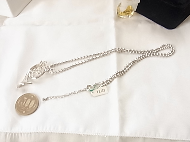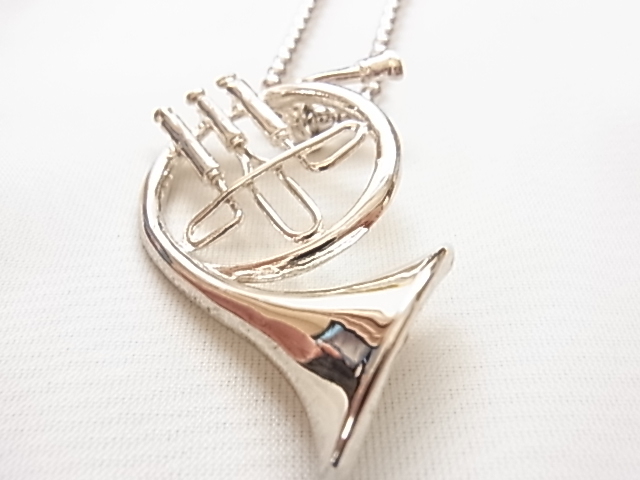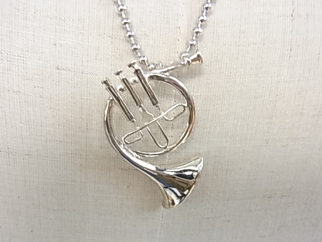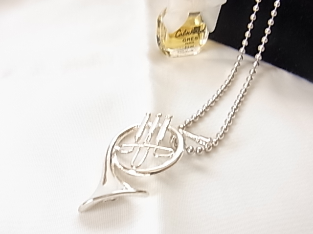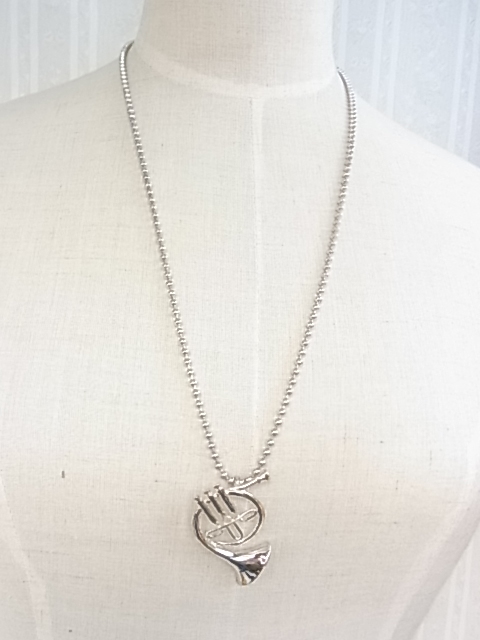 新品 定価2500円 トロンボーン?ラッパのデザインモチーフ 銀色 ロングネックレス☆☆