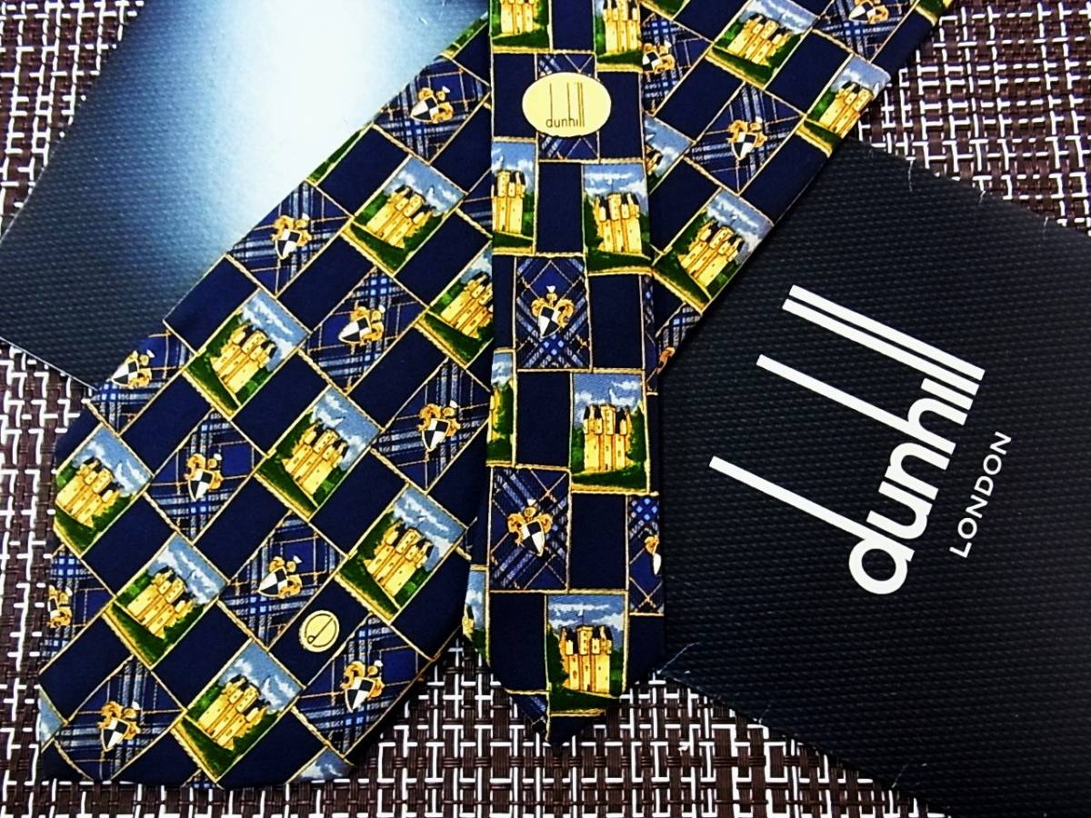 ・ω・ ★SALE★2684■ダンヒル【dunhill】~城・紋章~ネクタイ♪