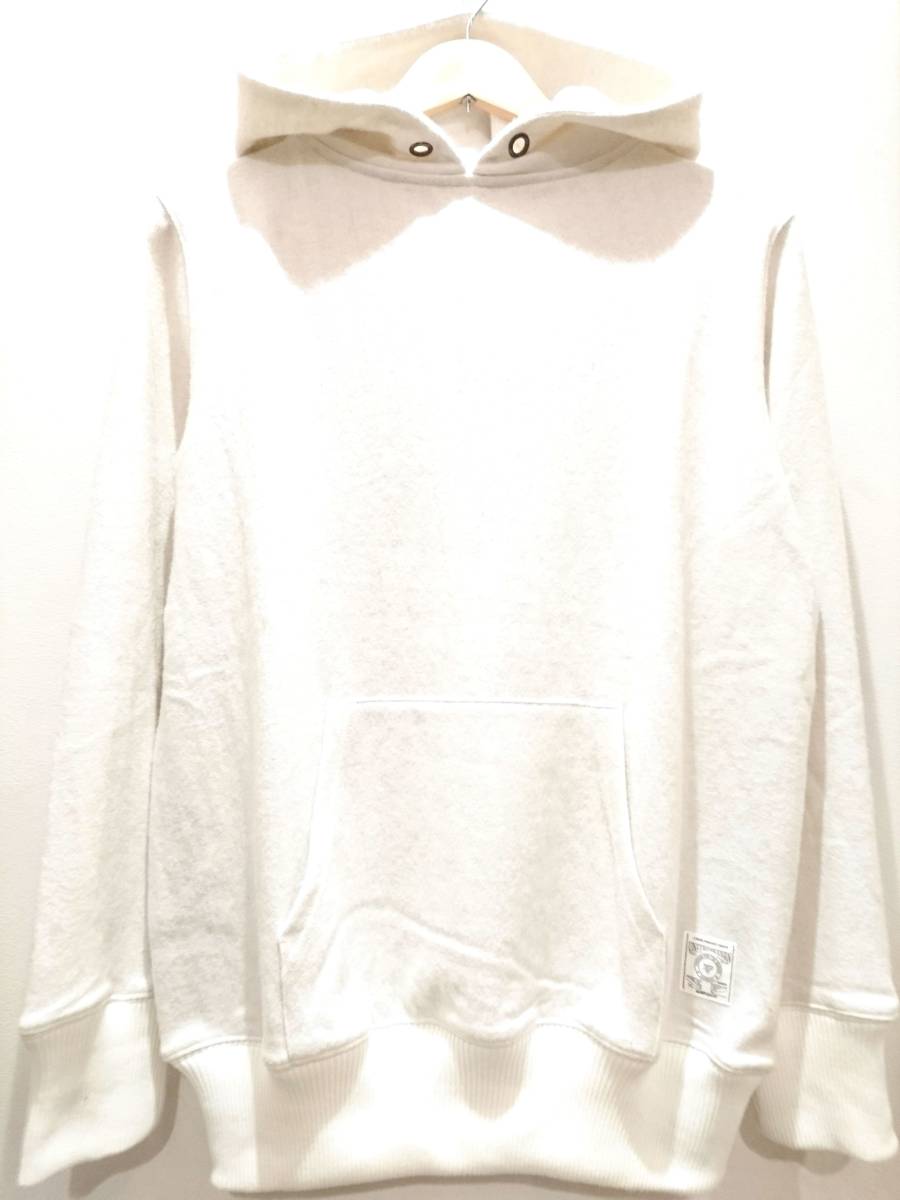 未使用ストレッチウール プルオーバー パーカー M オフホワイト白プルパーカー被りメンズ レディース男女シンプルお洒落ウールRanch新品