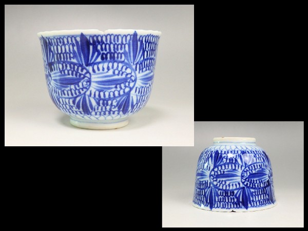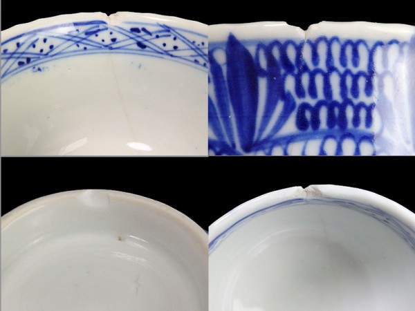 【金継材料】 038 古伊万里 染付 線描き 微塵の図 向付